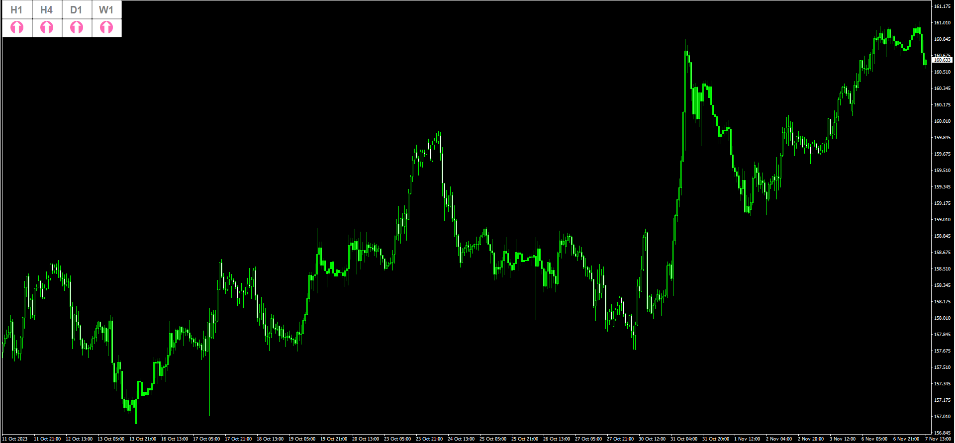 Ichis DowTrendと姉妹インジケーター【Ichis DowCheck】を同時利用することにより、他時間足のダウ状況をLINEで確認することができます。 他時間足のダウ状況は最大4つの時間足までチャートに表示することができます!(チャート左上がIchis DowCheckでそれ以外がIchis Dow・Trendとなります) こちらもチェックしてみてください♪