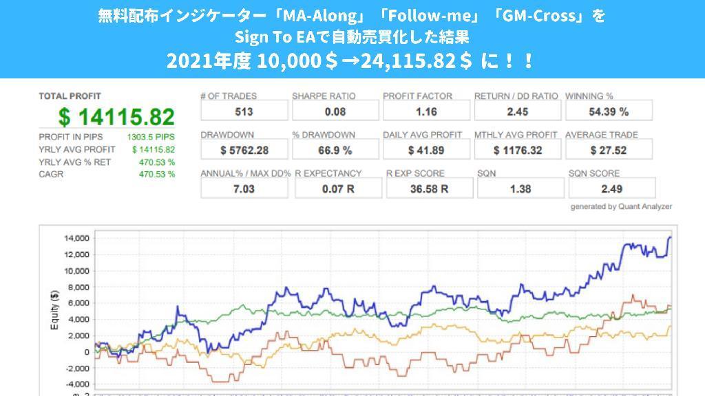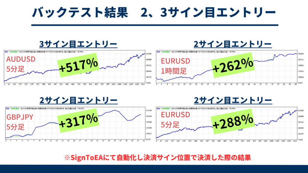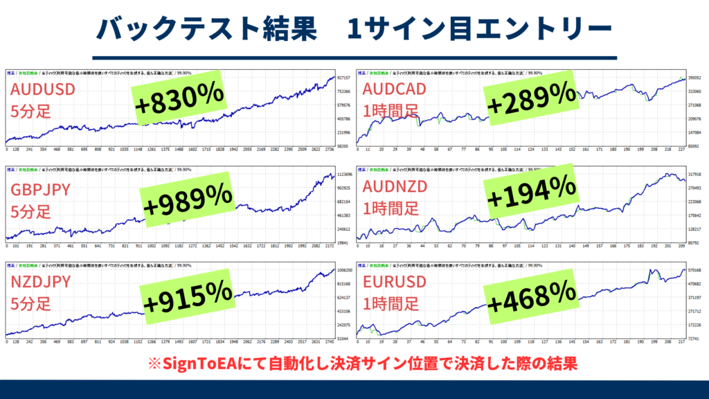 このようにサインツールを自動売買するだけで、右肩上がりのオリジナルEAが量産できてしまうのです。