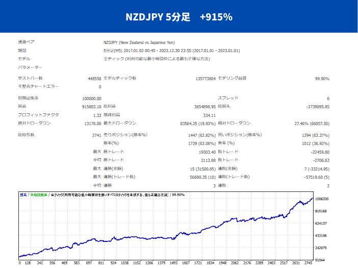 SignToEAでバックテストを取った結果2017~2022の6年間で+4,700万円という最高傑作サインツールです。