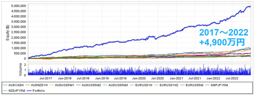サインツール自動売買化のノウハウを使った結果、2017~2022の6年間で+4,900万円のシステムが完成しました。