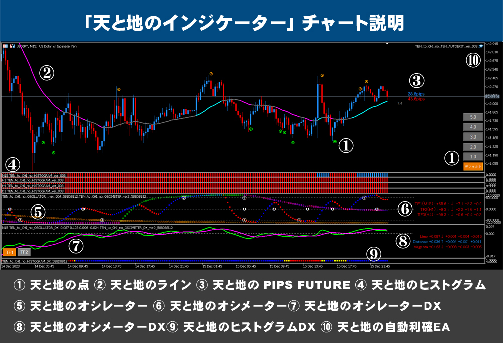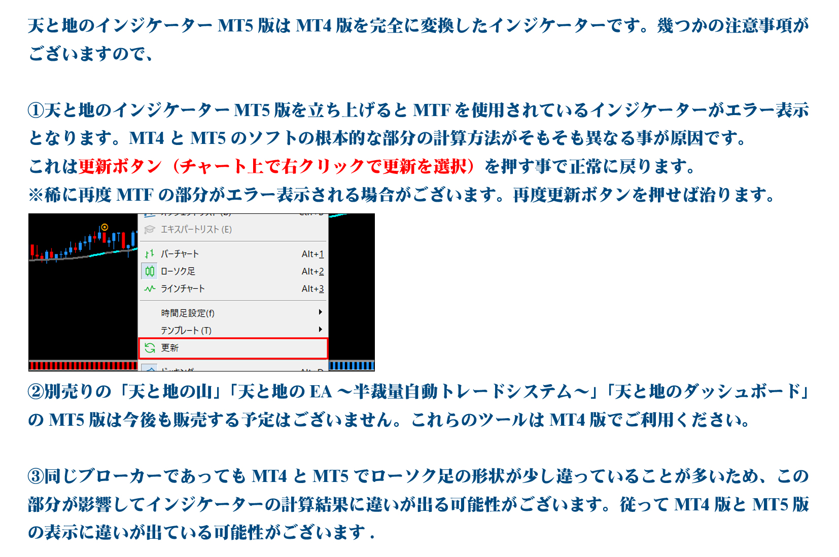 天と地のインジケーターの MT5 バージョンと MT4 バージョンはまったく同じ仕様です。ツールの詳細については下記リンクの「MT4バージョン:詳細ページ」をご確認ください。