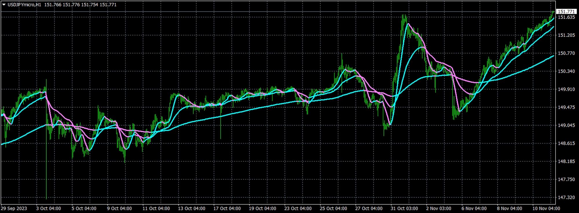 移動平均線の傾きを色で表示。トレンドが視覚的に見易くなります。