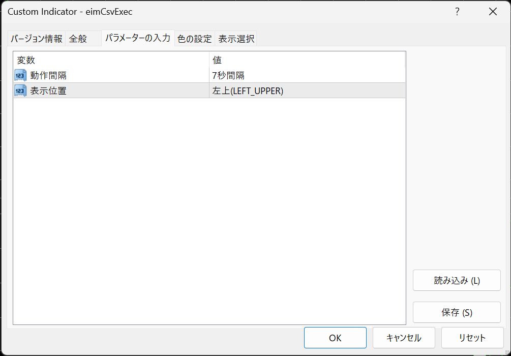 それぞれのインジケータによって必要なパラメータ数が異なります。