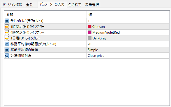 ・1時間足、4時間足、日足の線の色を変更することが出来ます