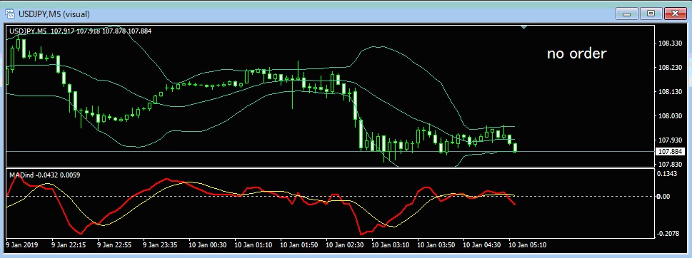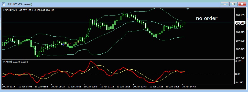 バンドウォーク後の最初のシグナルクロスでのエントリーでは勝てないということで一回目クロスはほとんど見送り、MADind の 2 回目のシグナルクロスを中心にトレードしてみました。