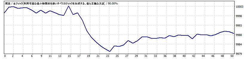pf = 0.73 勝率 44 % 50 トレード 平均利益 -0.22 ドル