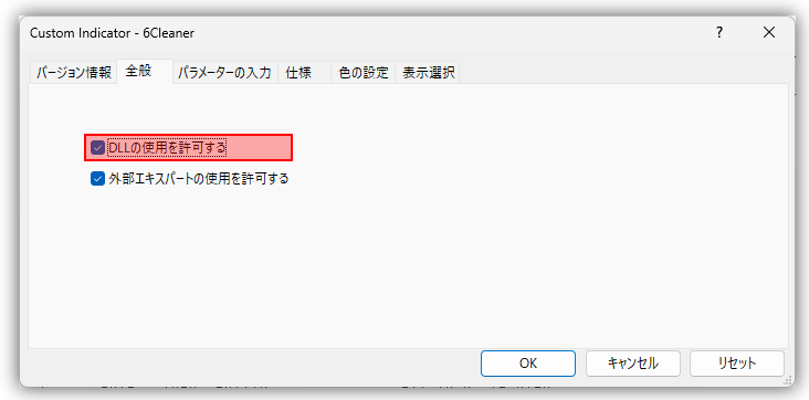 全般タブで「DLLの使用を許可する」がチェックされていることを確認して下さい。