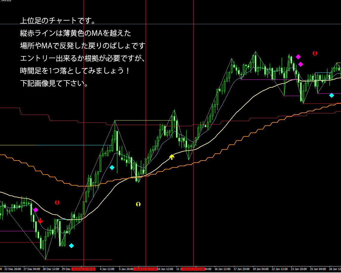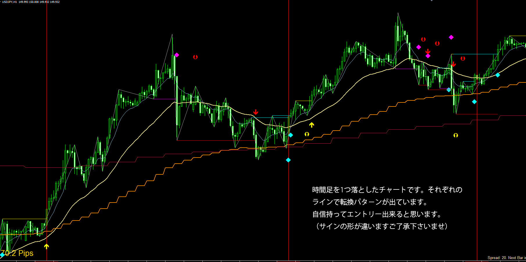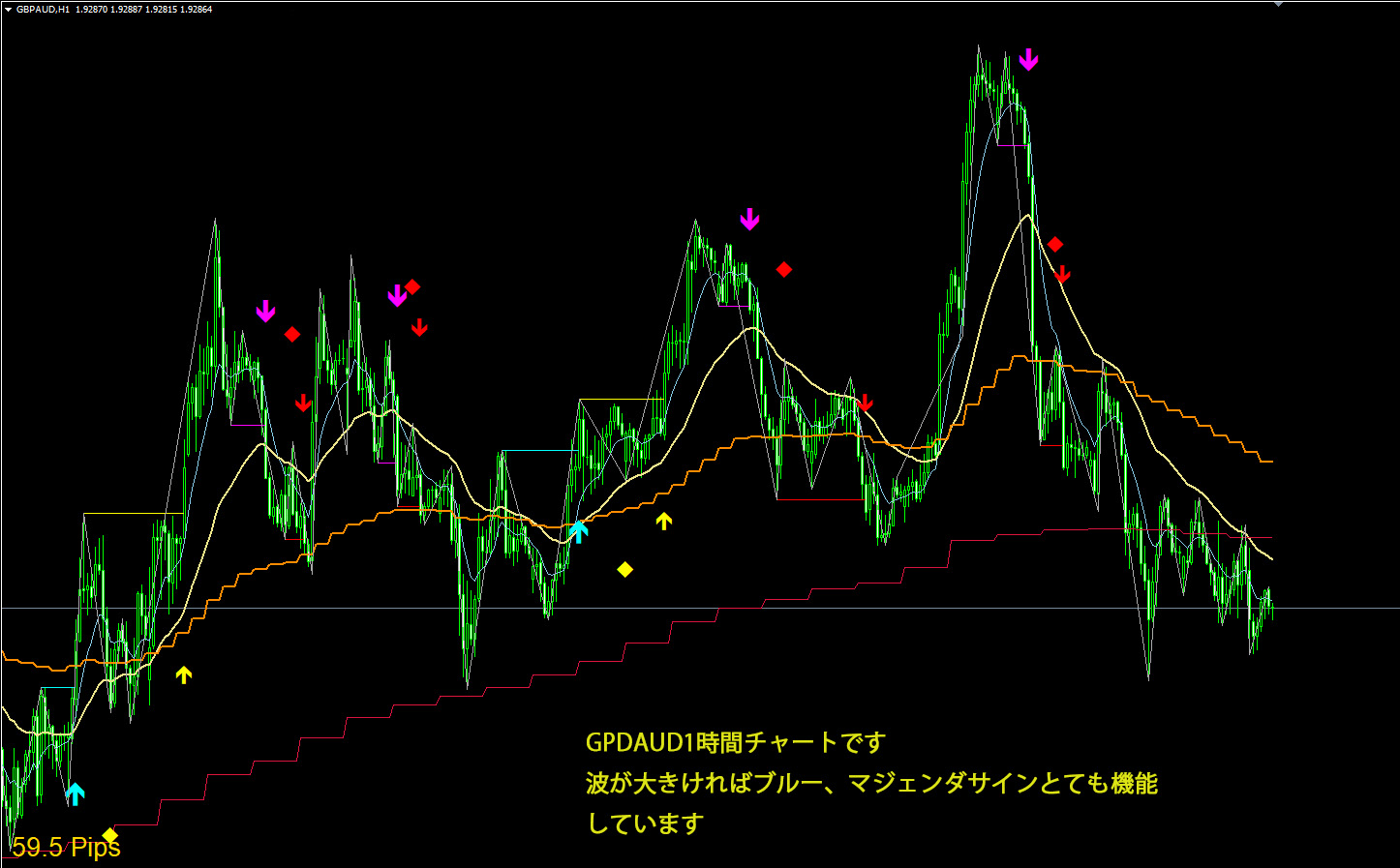 戻り売りや押し目買いのところにもサイン出るので有効に使って頂ければと思います。