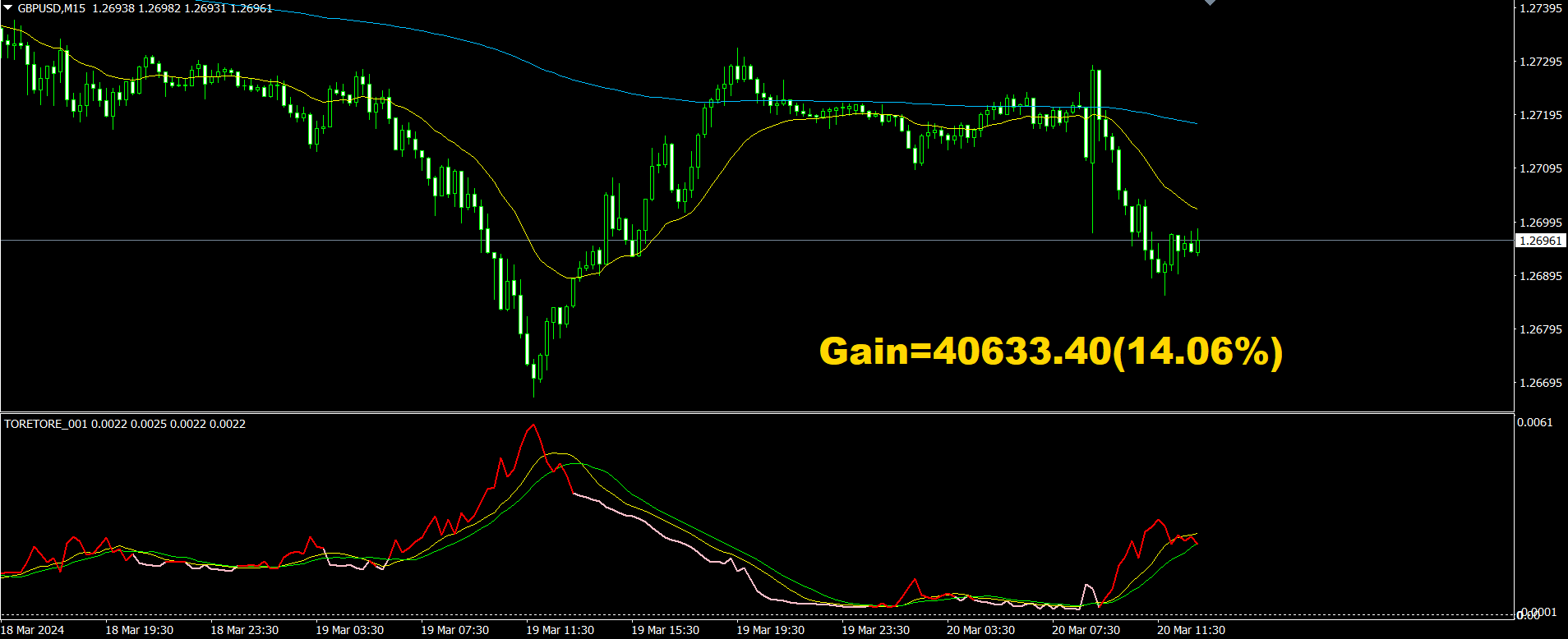 上の図は、GBPUSDの15分足チャートです。