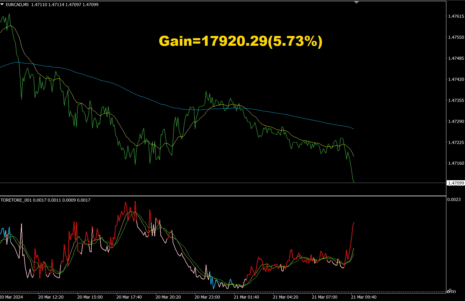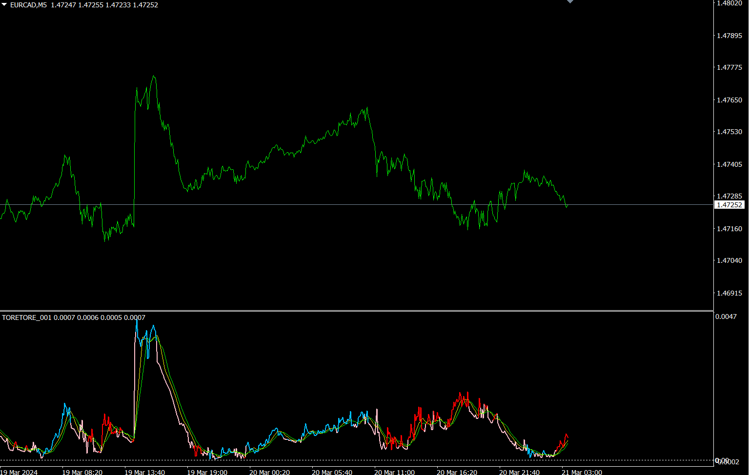 5分足のEURCADのチャートです。