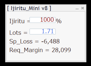 ロット数の計算は、「維持率mini」インジケータを使うと、維持率