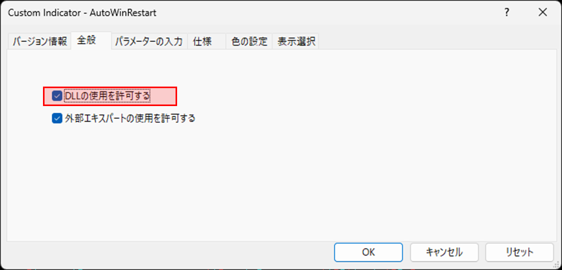 全般タブで「DLLの使用を許可する」がチェックされていることを確認して下さい。