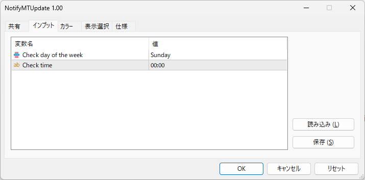 概要 MT4またはMT5のインジケーターとして稼働して、指定した特定曜日、特定時間にMT5のライブアップデート通知を監視します。