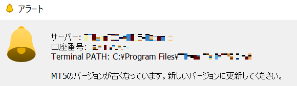 MT5が旧バージョンになった場合はトレードができなくなります。 特にVPSを利用している場合は気が付くのが遅れる傾向があります。