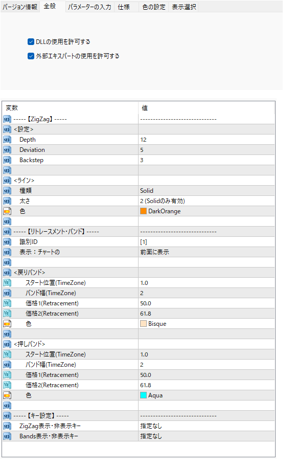 ZigZagラインの表示・非表示をコントロールするキーを設定します
