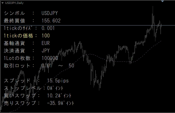 様々なマーケット情報(取引仕様)をチャートに表示できるインジケーター