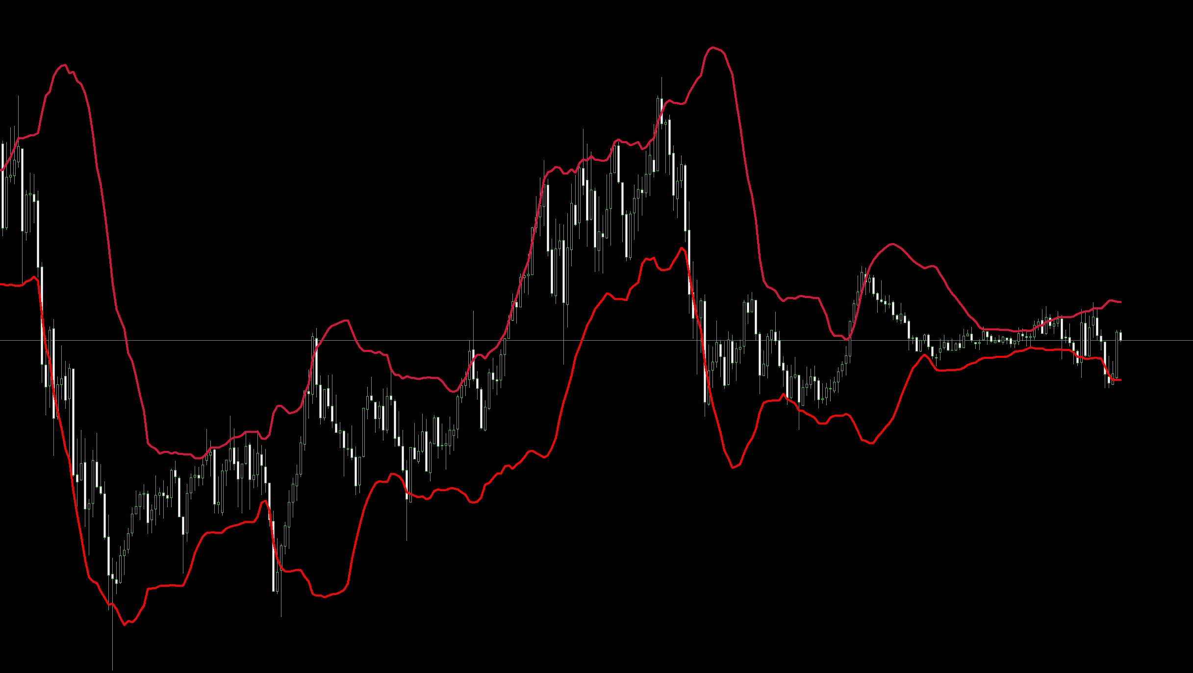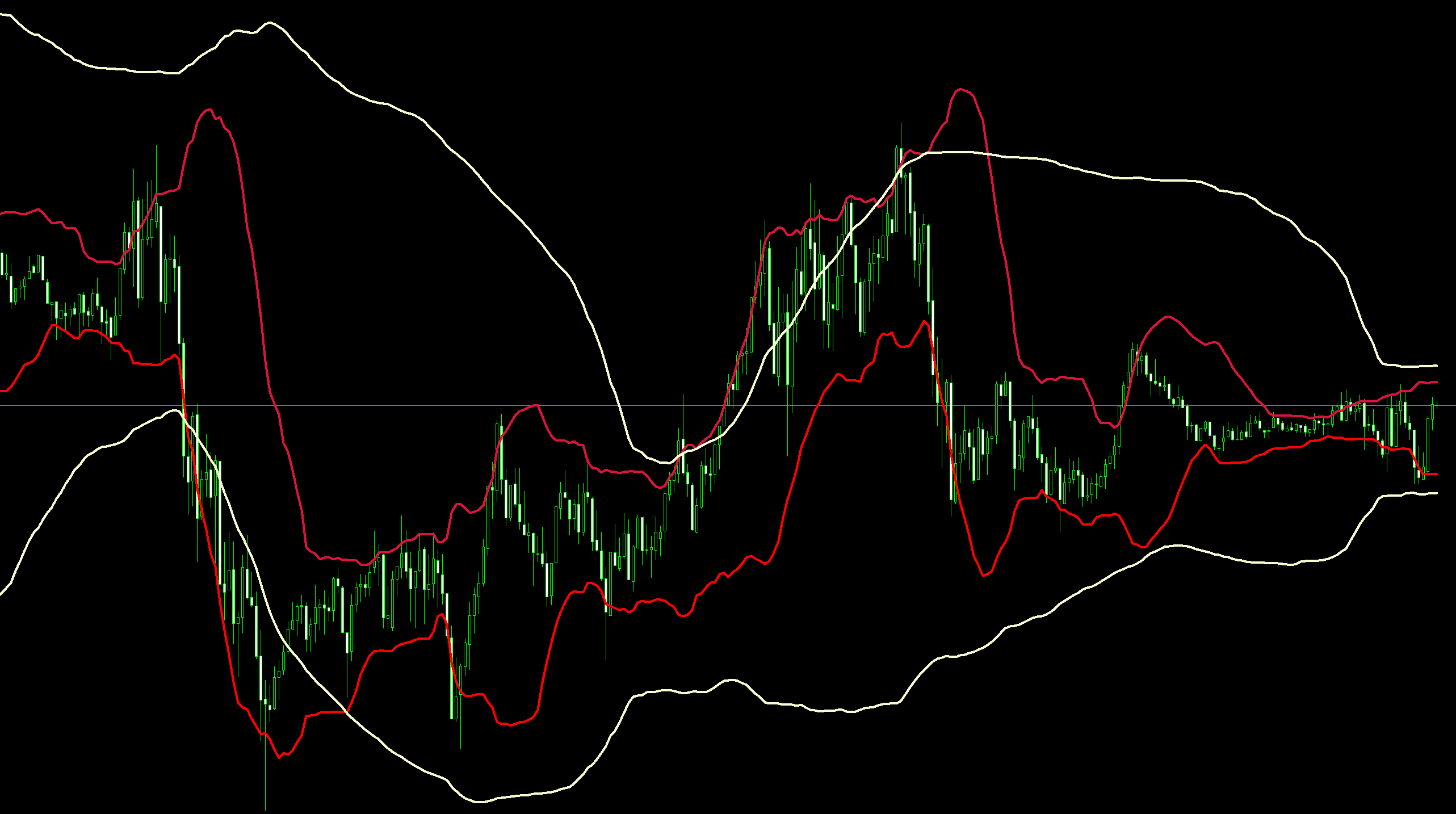 1分足チャートに「Bands」というインジケーターを表示しています。