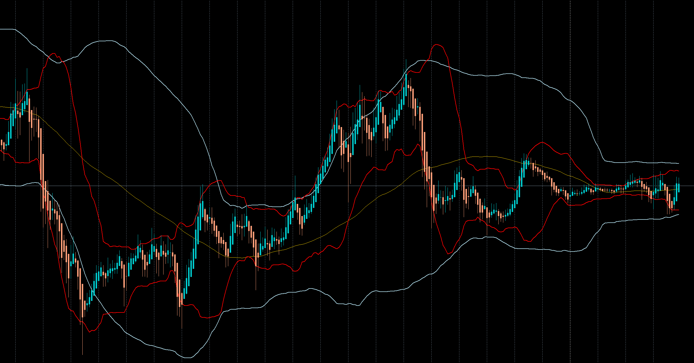 一つ上の時間足のボリンジャーバンドを追加表示したものです。