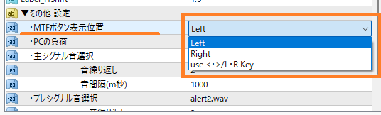 パラメータ『MTFボタン表示位置』で指示…「Left」固定,「Right」固定,KeyBoard操作(Keyは<,>,L,Rの4種を使用)を選択