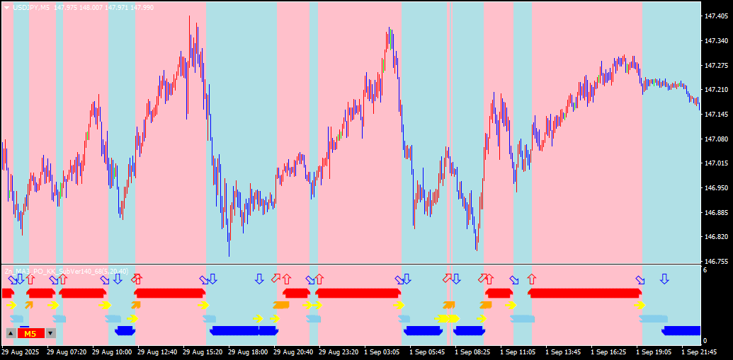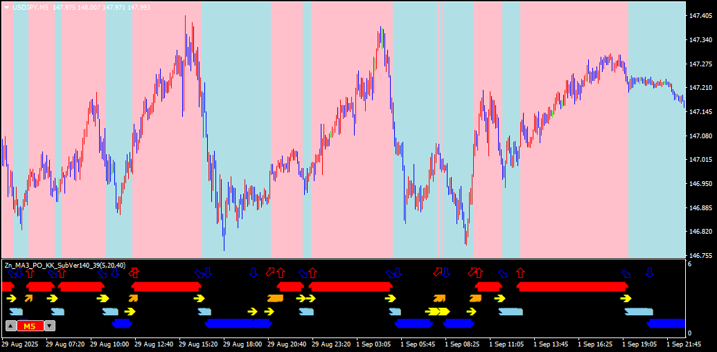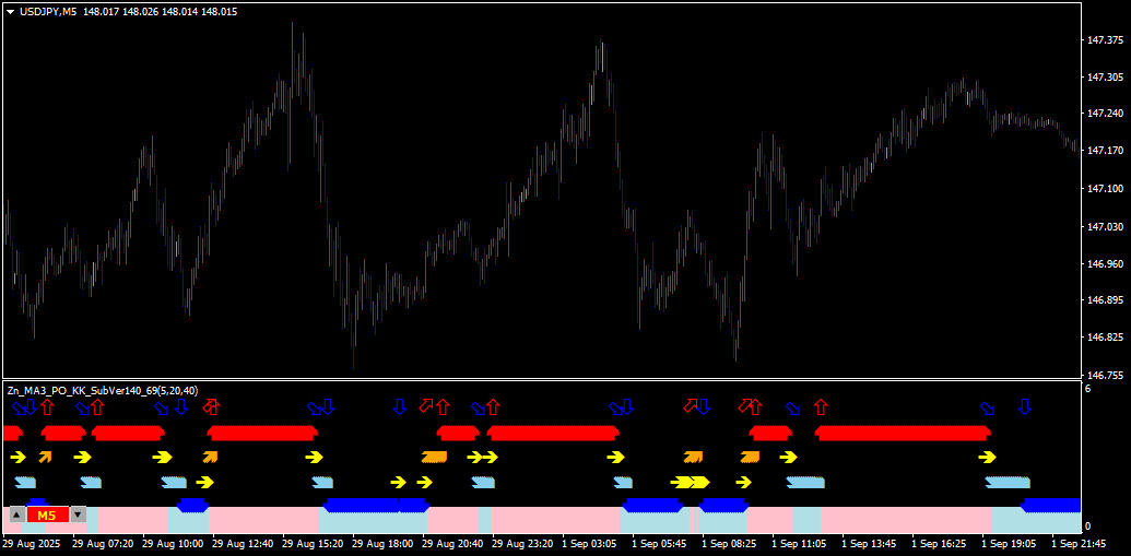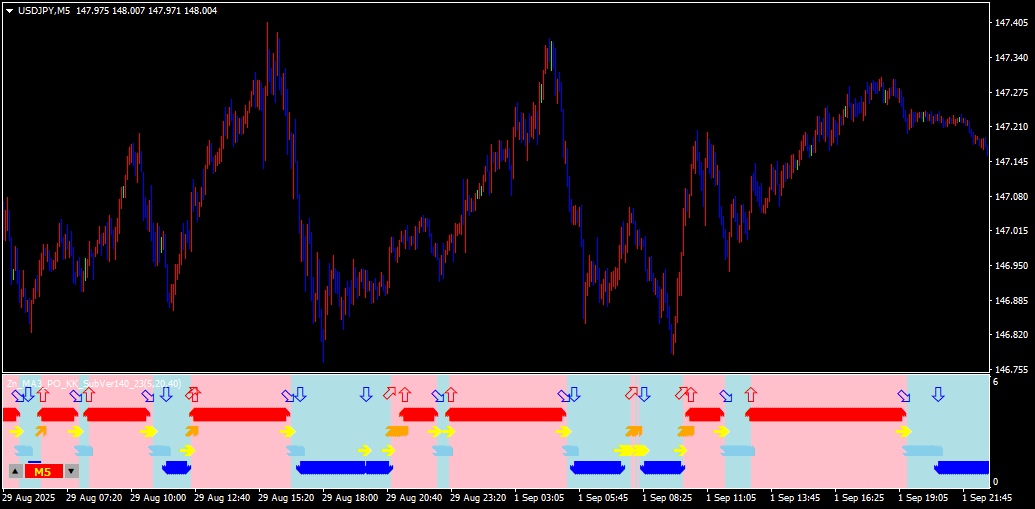 ★サンプル1…メインチャート時間軸:5分足  サブウィンドウ(当インジケータ)時間軸5分足