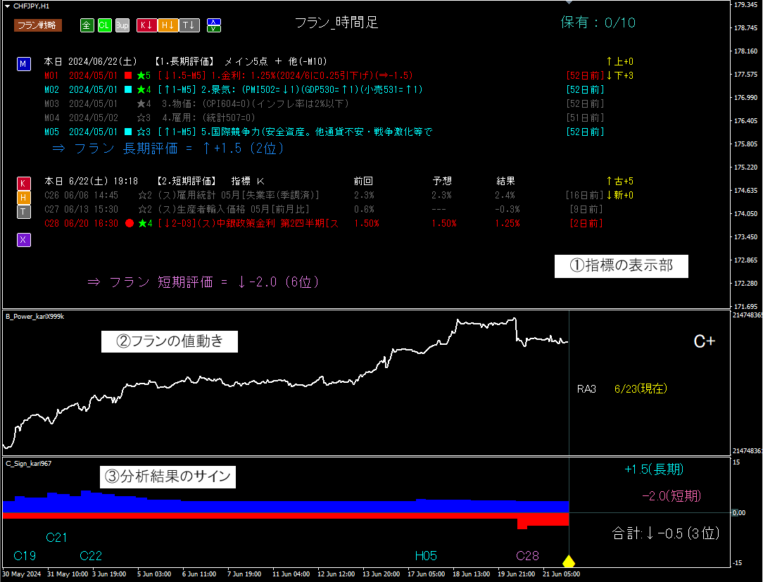 ②フランの値動き(フラン単独での値動き)