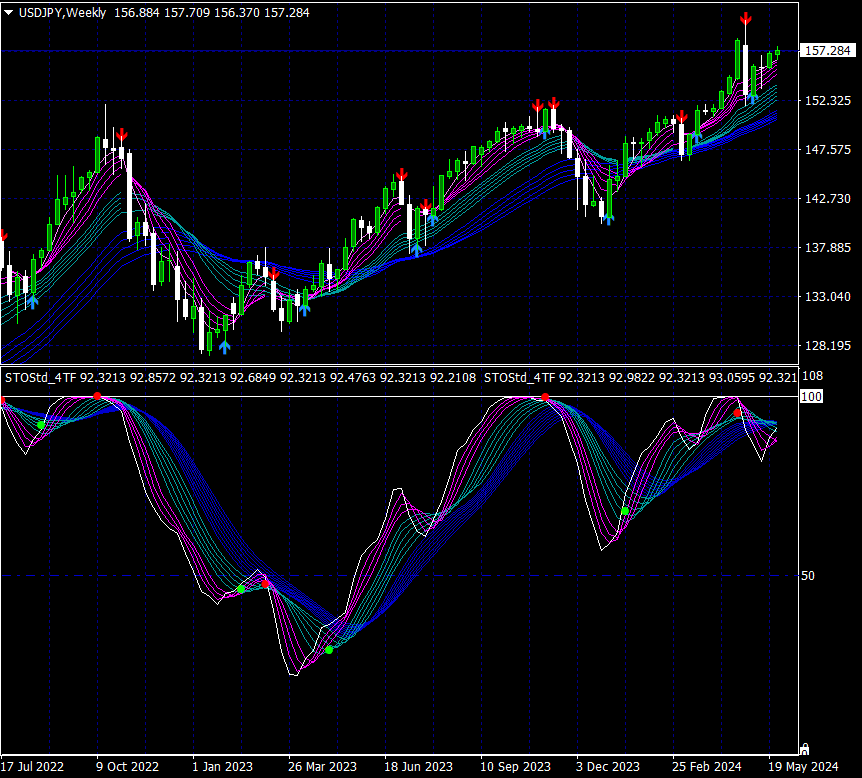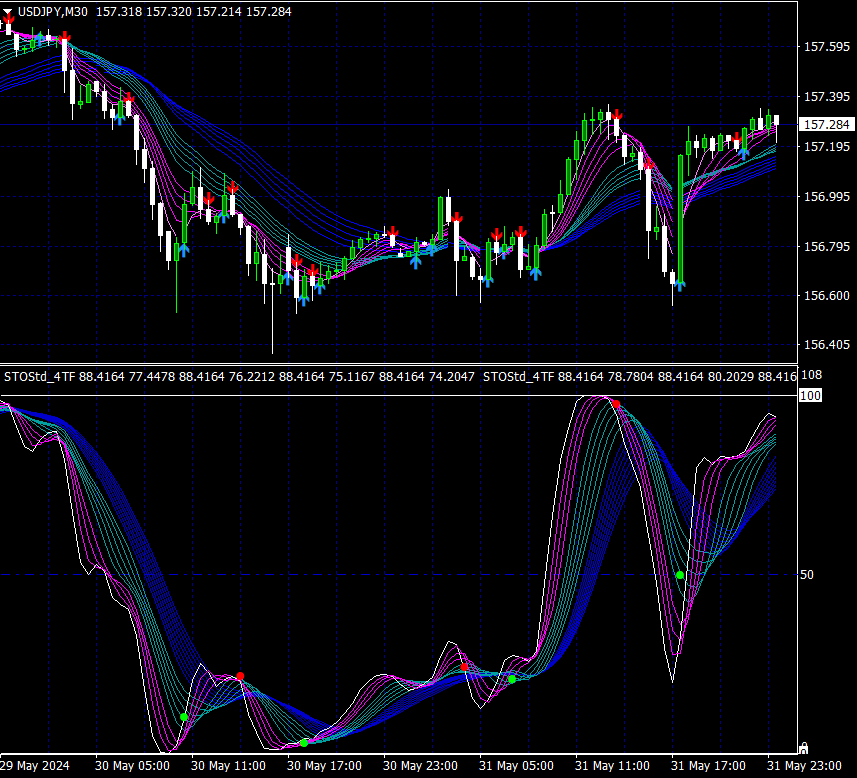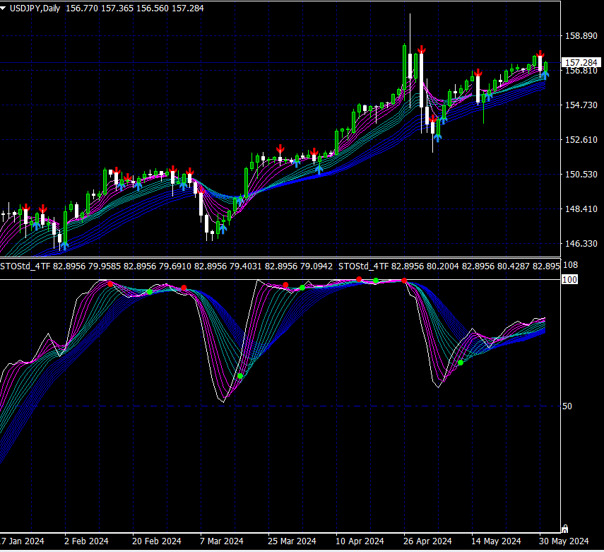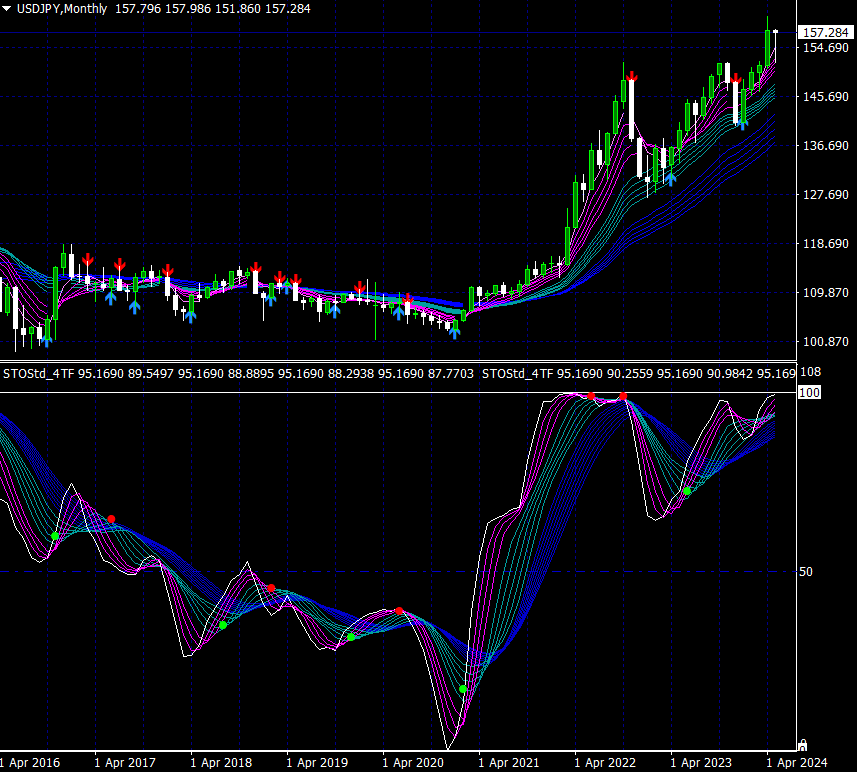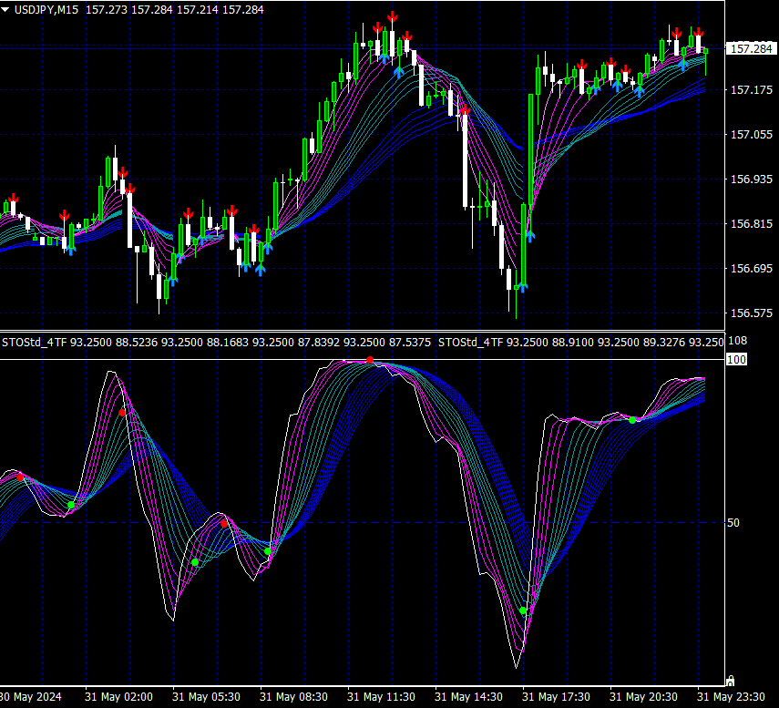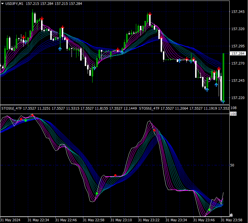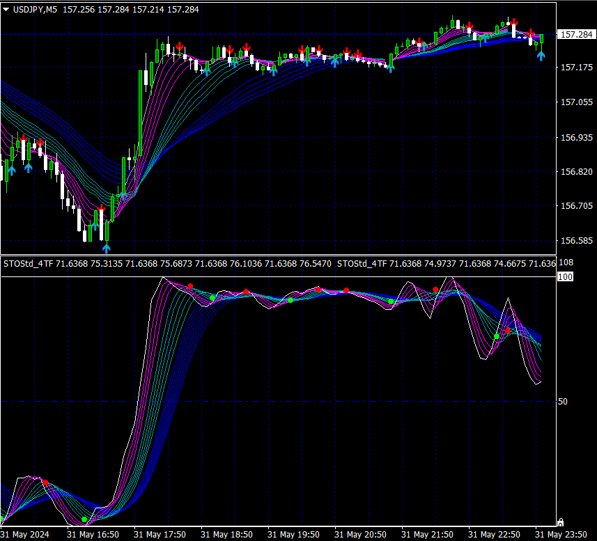 USDJPYの同じ時間帯(2024/05/31)のチャートを全ての時間足で公開します。
