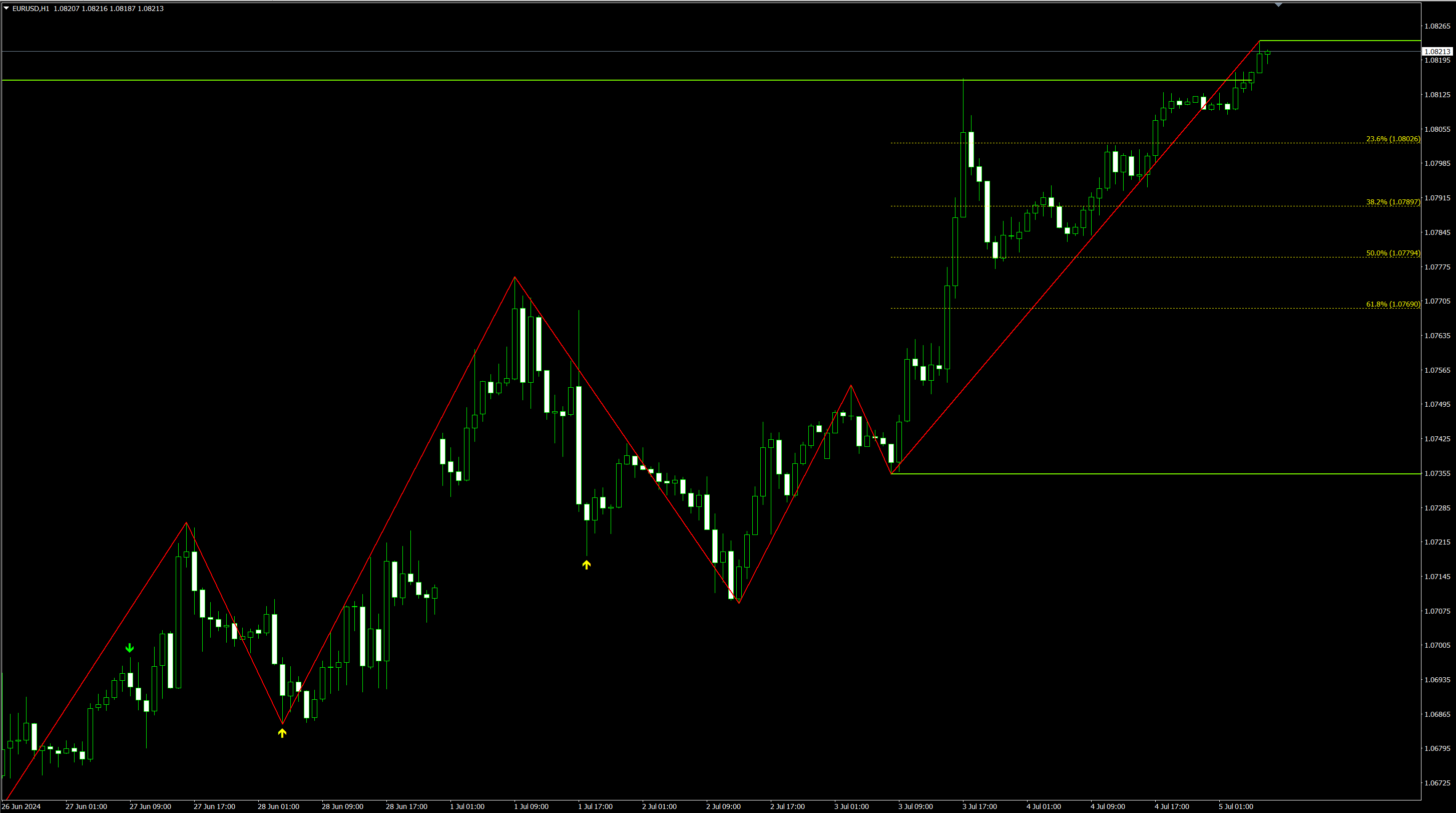 フィボナッチレベルは多くのトレーダーに注目されているため、これらのレベルでの価格の反応は市場心理を反映しています。価格がフィボナッチレベルに到達すると、多くの売買注文が発生し、これが市場の動きに影響を与えます。