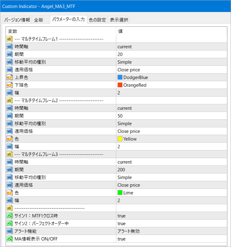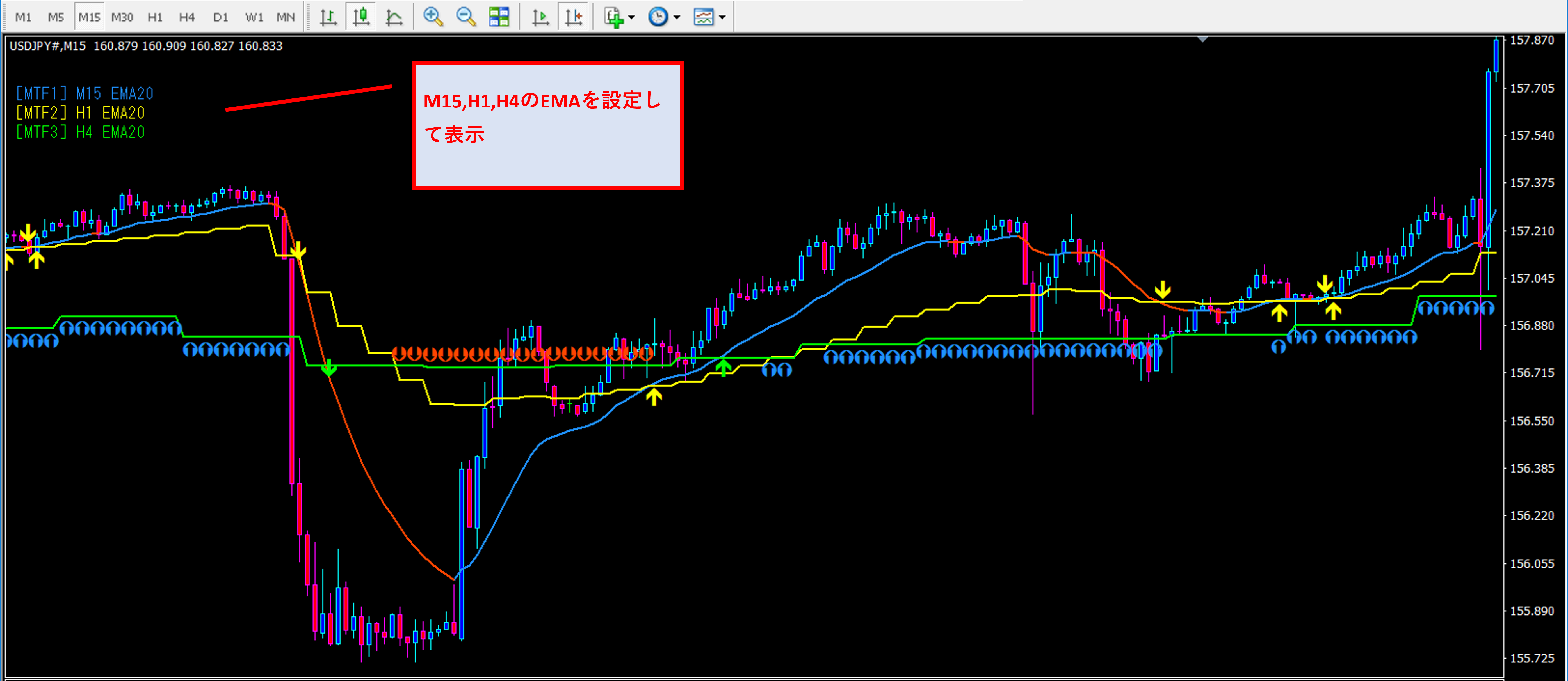 初心者から上級者までシンプルかつ王道のトレード手法の移動平均線(MA)を3ライン同時にマルチタイムフレーム表示!