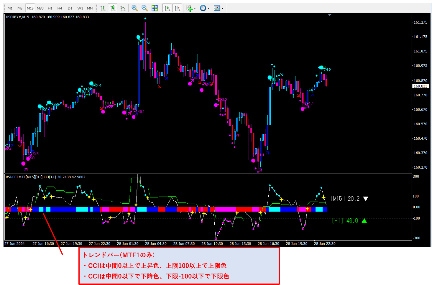 マルチ RSI&CCIオシレーター トレンドバー表示/チャートサイン表示