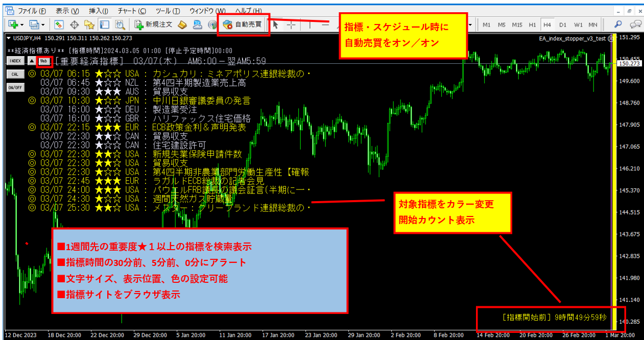経済指標と週間スケジュールでEAの自動売買をオン/オフ!!
