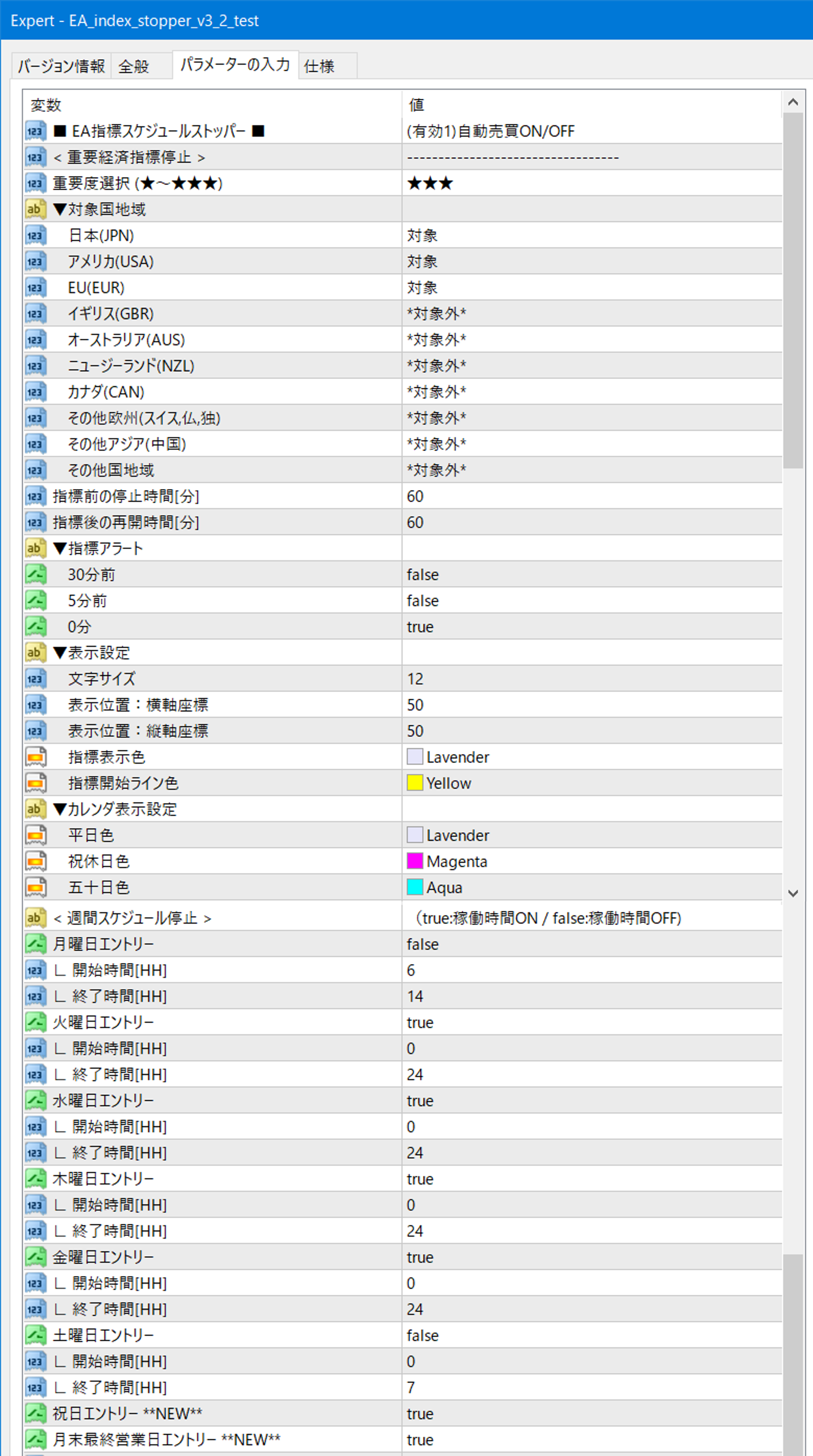 【指標】EAストッパー!経済指標&スケジュール【自動売買ON/OFF】