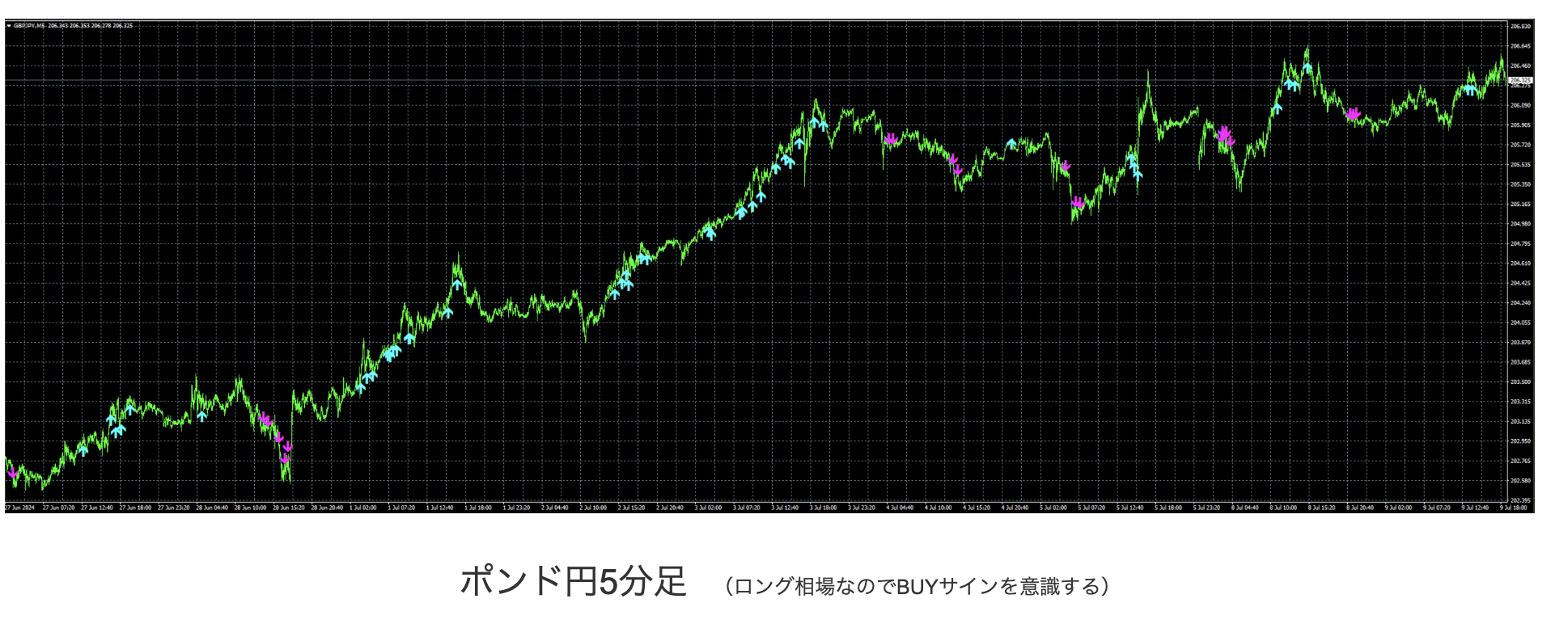 5分足などで他の通貨ペアでもインジケーターのパラメーター調整でトレードできます。