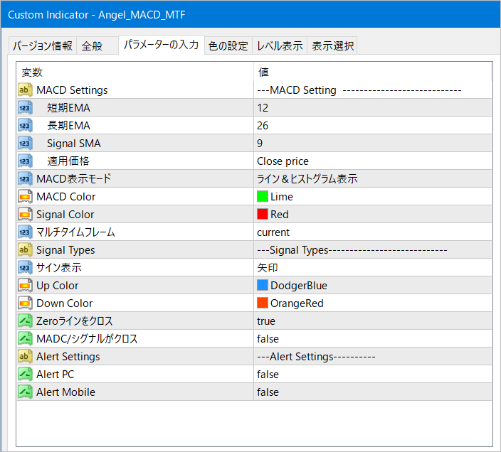 ・MACDの設定は標準的な設定になっています。ご自由に設定してお使いください。