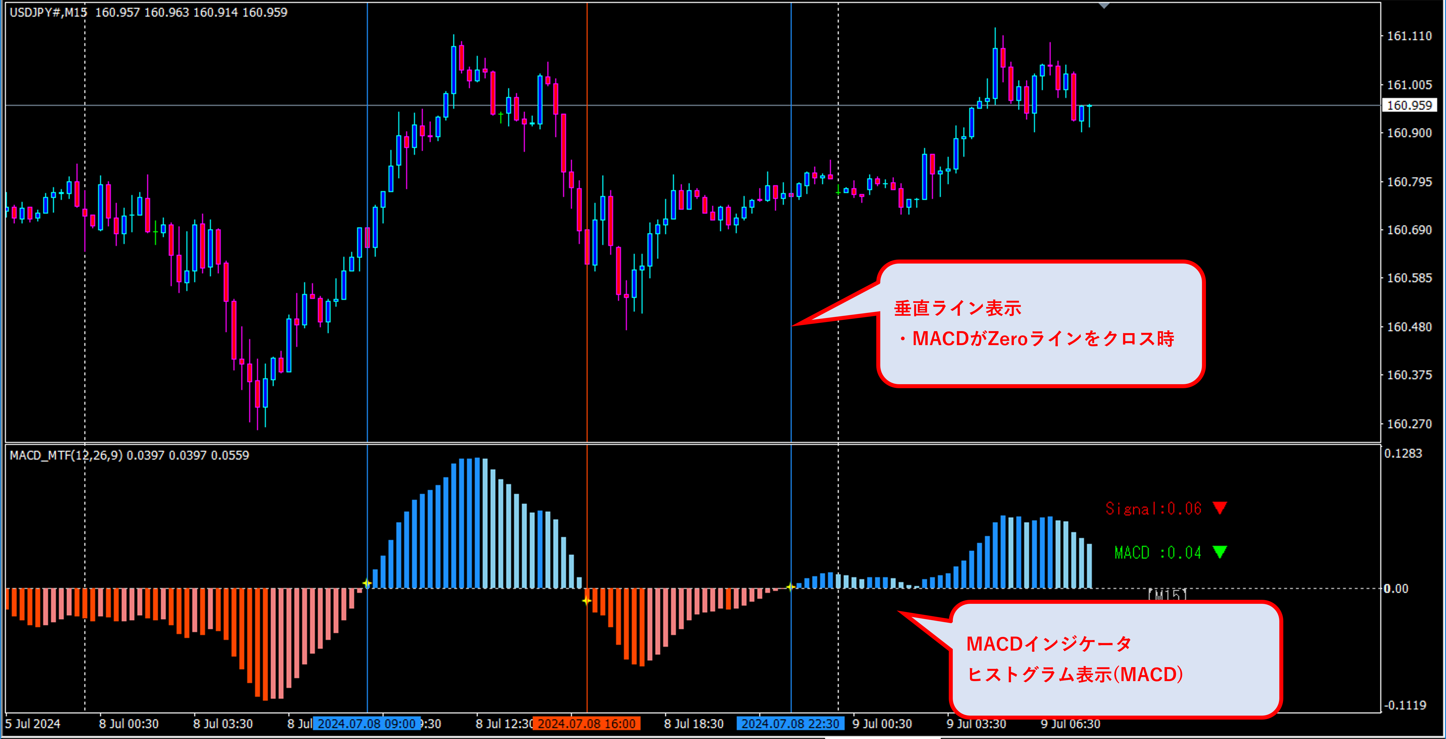 ・矢印サインの代わりに、垂直ラインにてZEROラインのクロスを表示