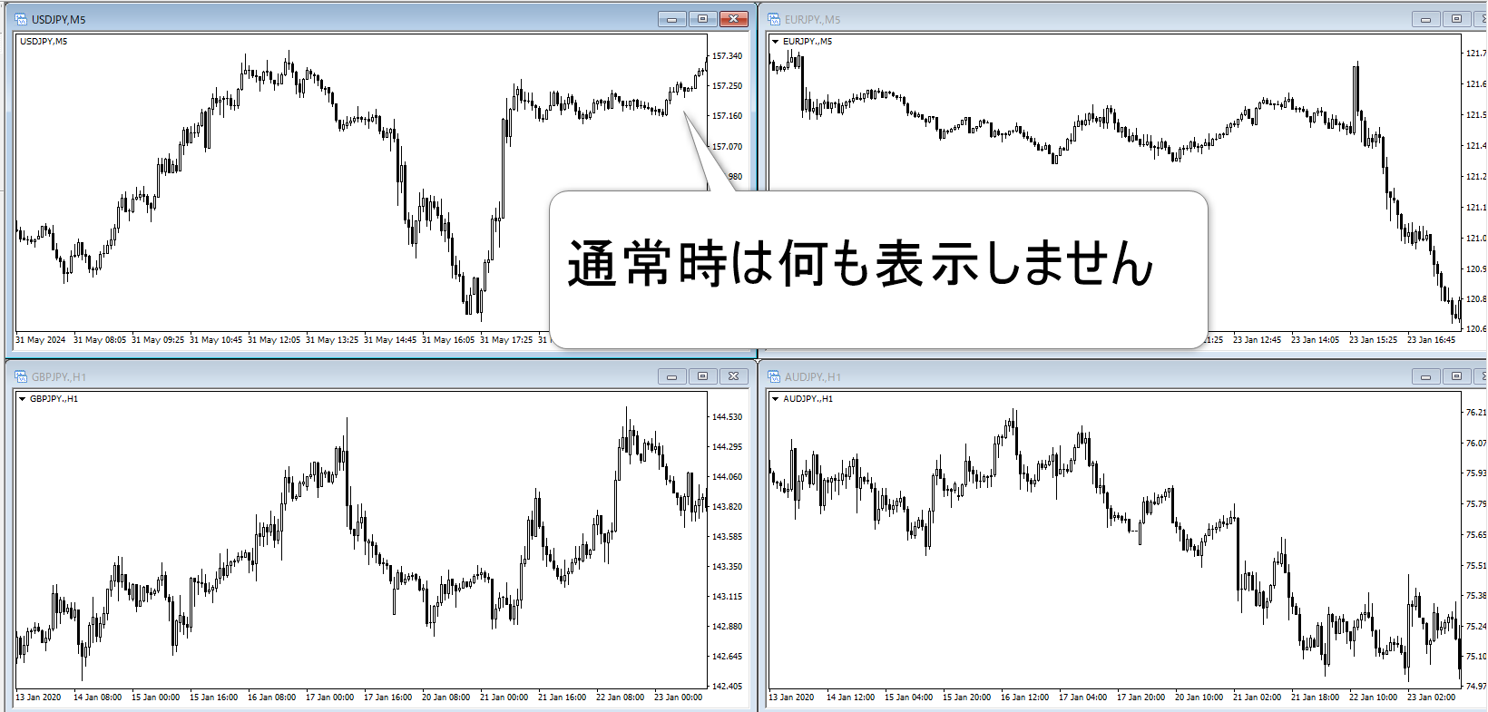 本インジケータでは最大化した時のみ、文字列を表示します。