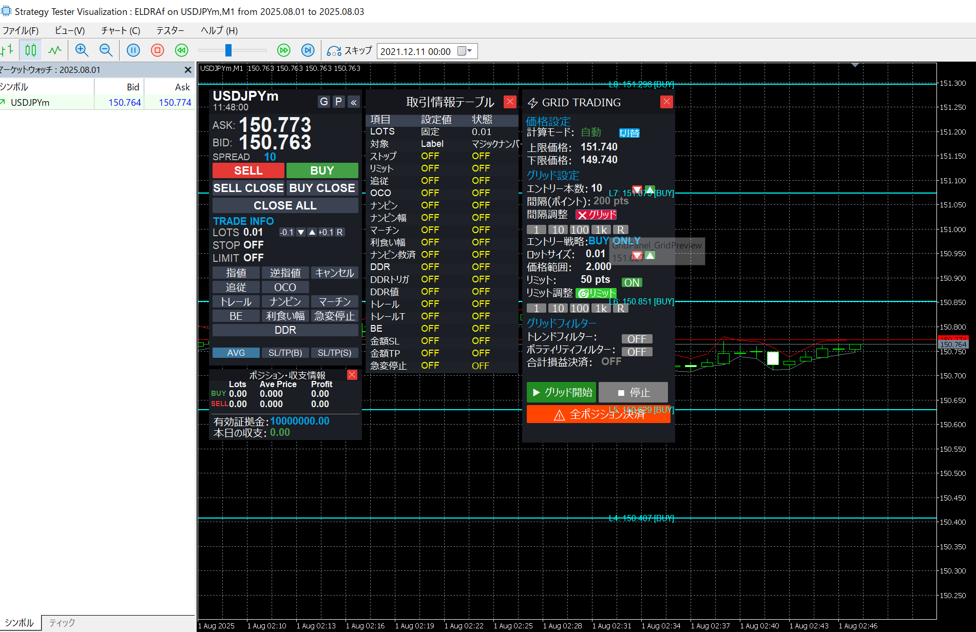 ELDRAは、複雑で高度な機能を、驚くほどシンプルなUIで操作できる革新的な取引システムです!💪 プロレベルの機能を、誰でも簡単に使いこなせます。さらに、バックテストでも完全動作するため、実運用前に安心して戦略を検証できます。
