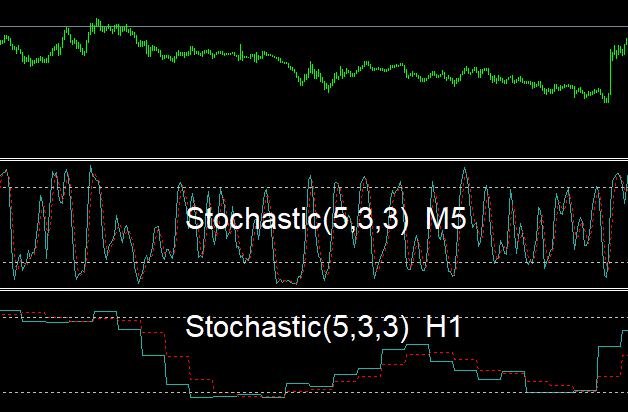 自分が見ているチャート上でより上位の時間足のストキャスティクスを表示することができます。