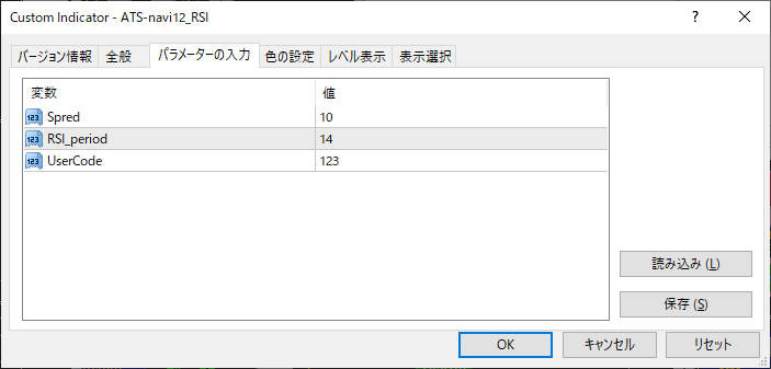 RSIのPeriod(バーの本数)の本数です。チャート上の「Reset」ボタンを押したときにこの値がセットされます。