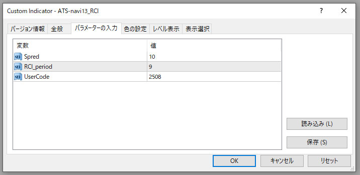 RSIのPeriod(バーの本数)の本数です。チャート上の「Reset」ボタンを押したときにこの値がセットされます。 |