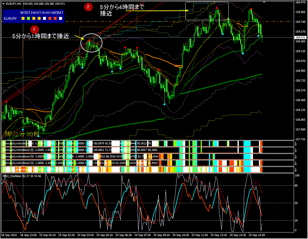 指定した時間足のシンクロの方向が逆転すると強制決済