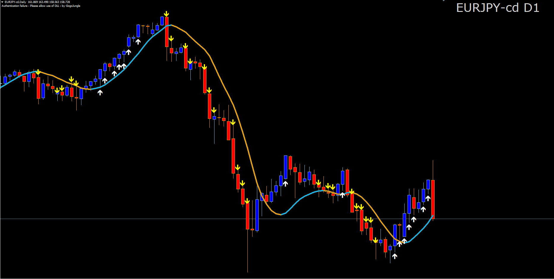 2 表示されたら色も角度も変わることのない魔法のMAで、トレンドとエントリー方向を明示します。