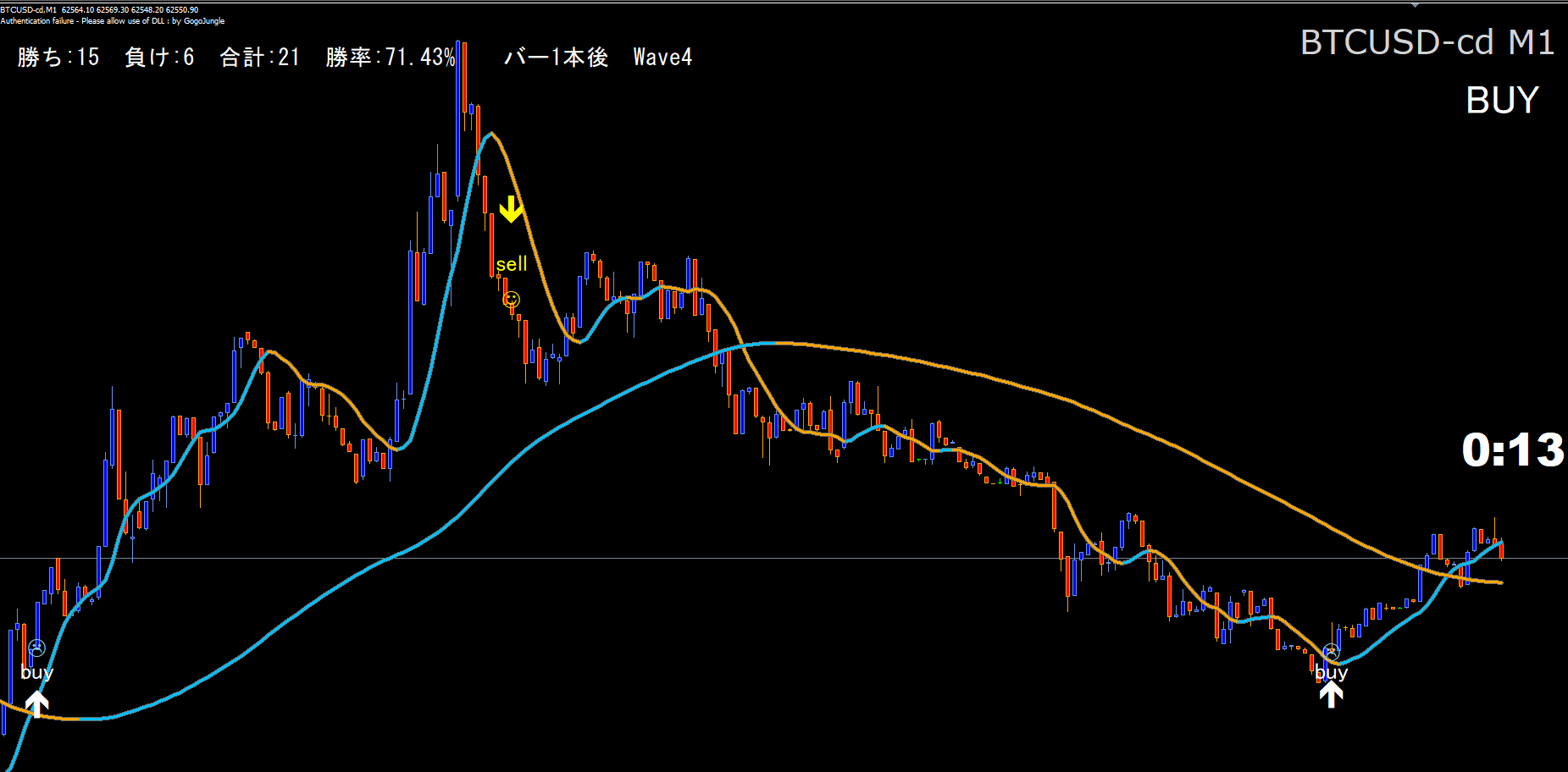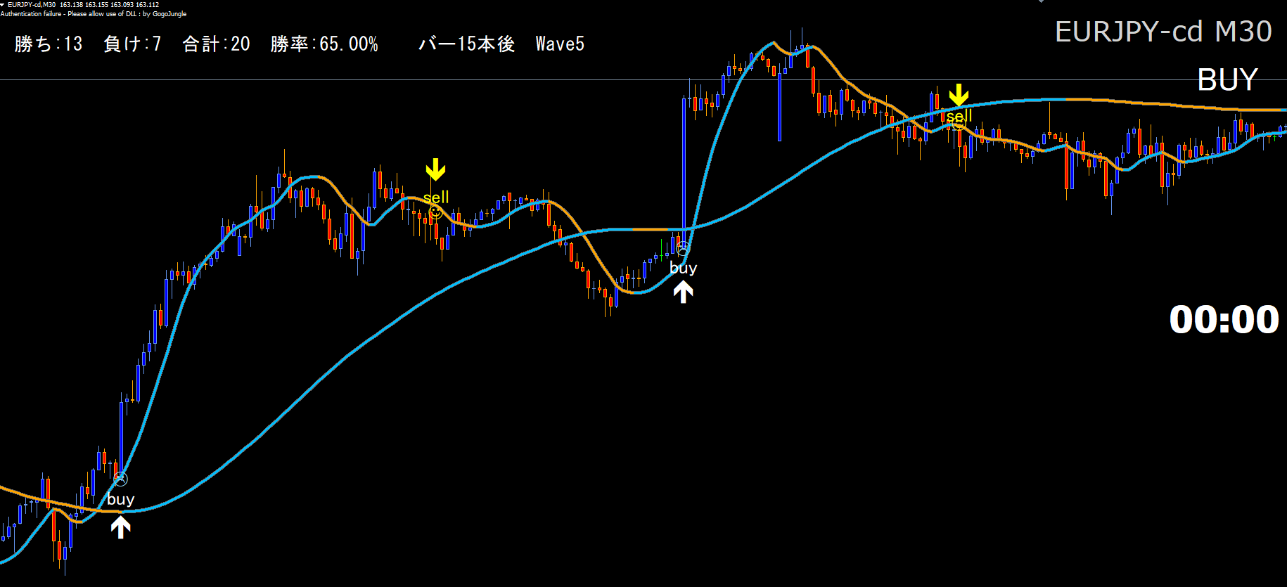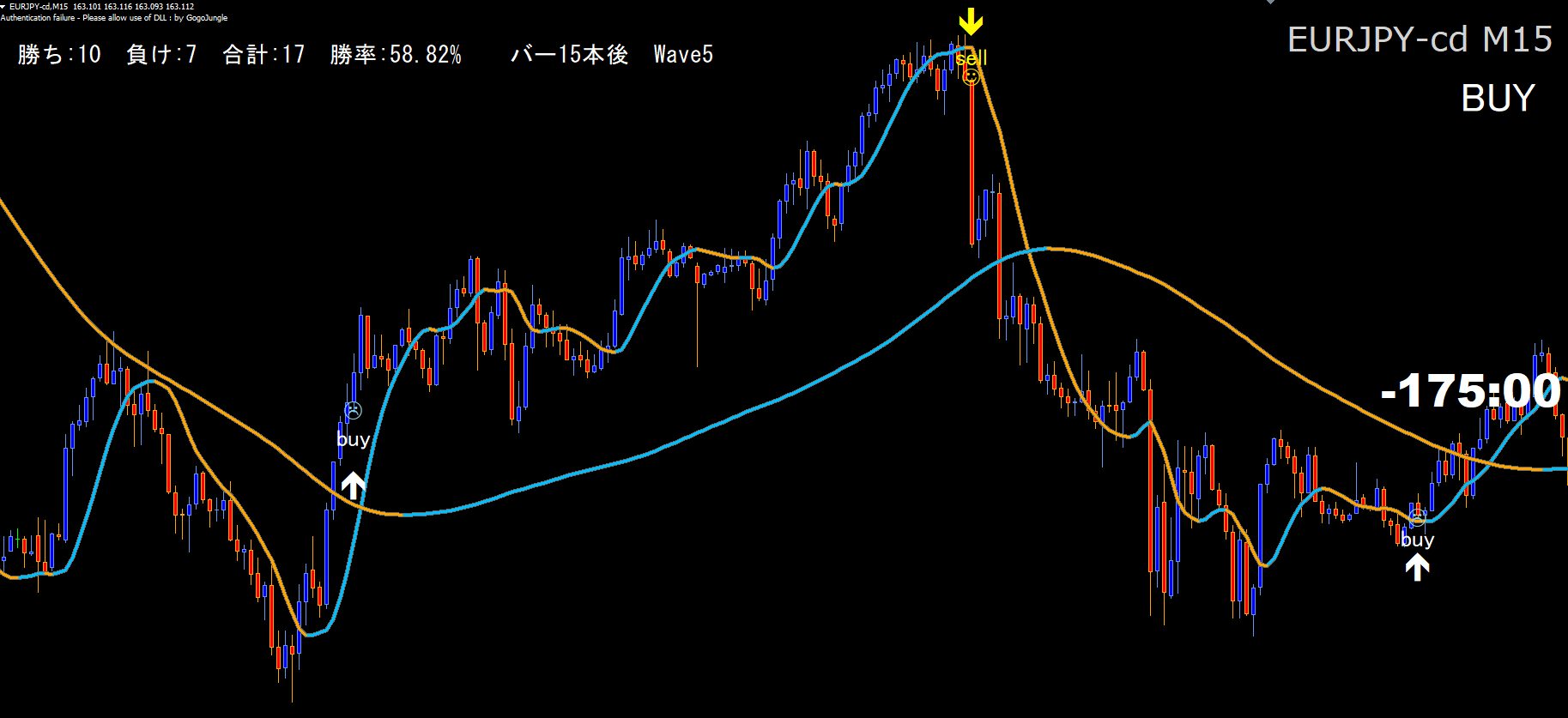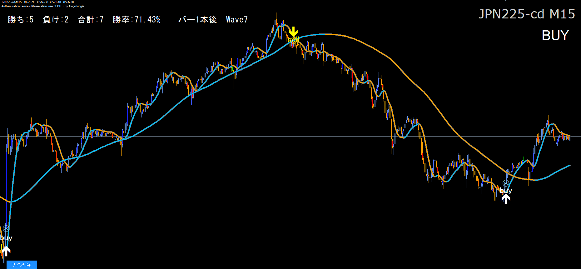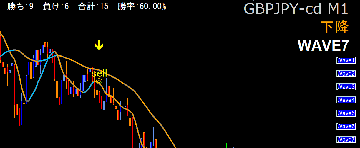 15分足にもマッチします。通貨ペアと時間足、Wave値のよい組合せを見付けてください。