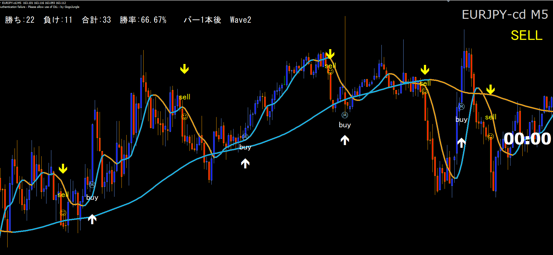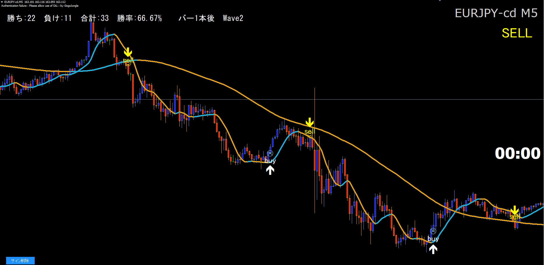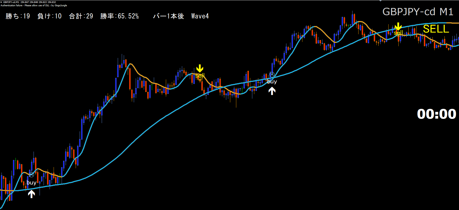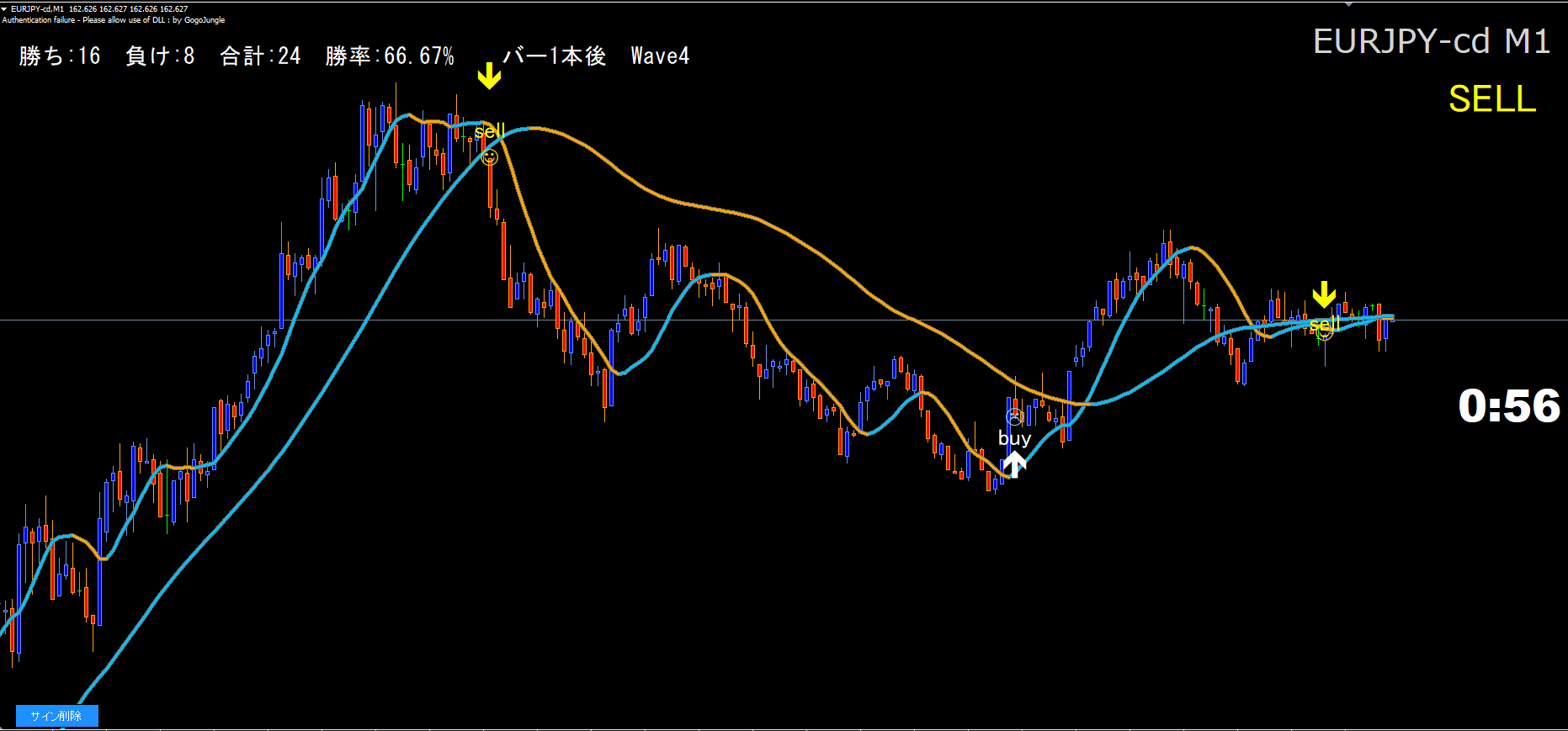 15分足にもマッチします。通貨ペアと時間足、Wave値のよい組合せを見付けてください。