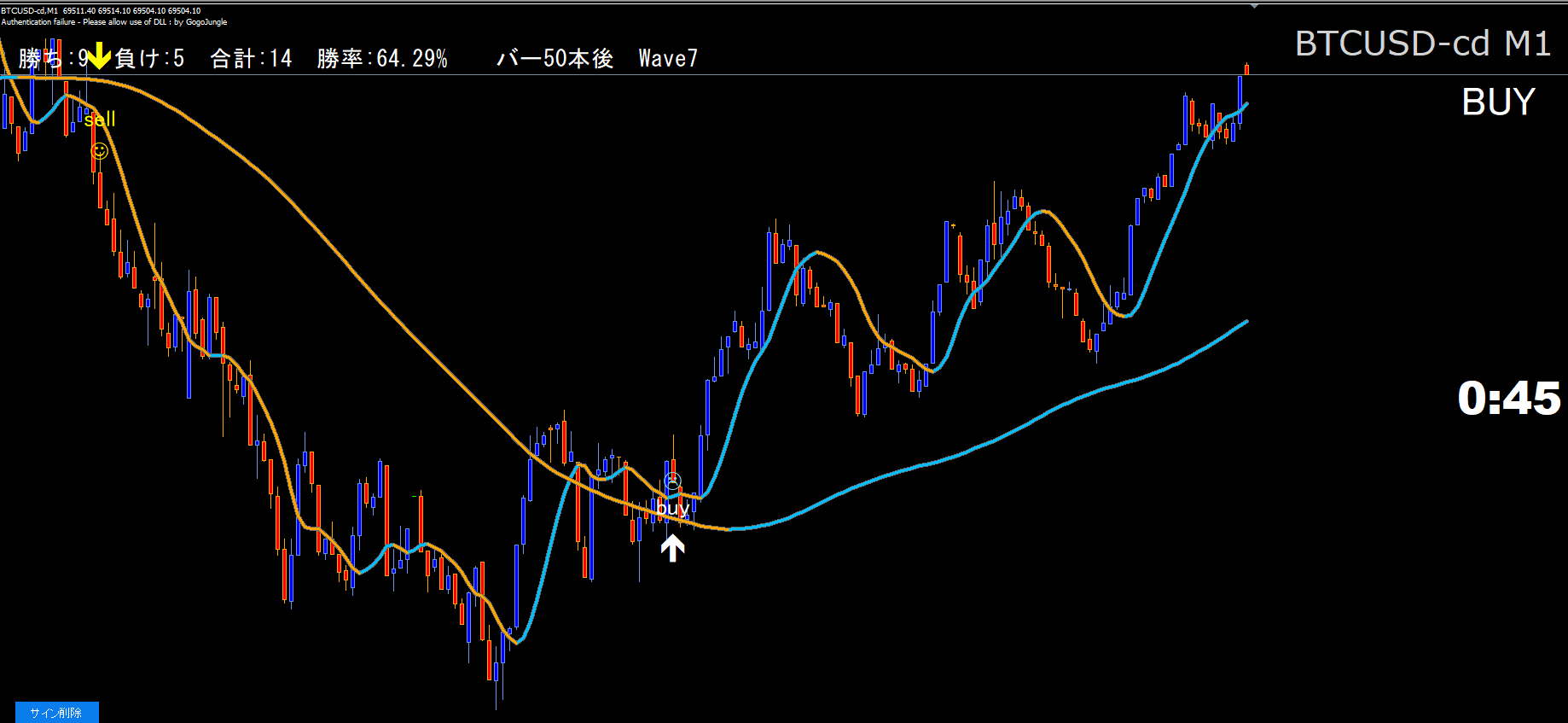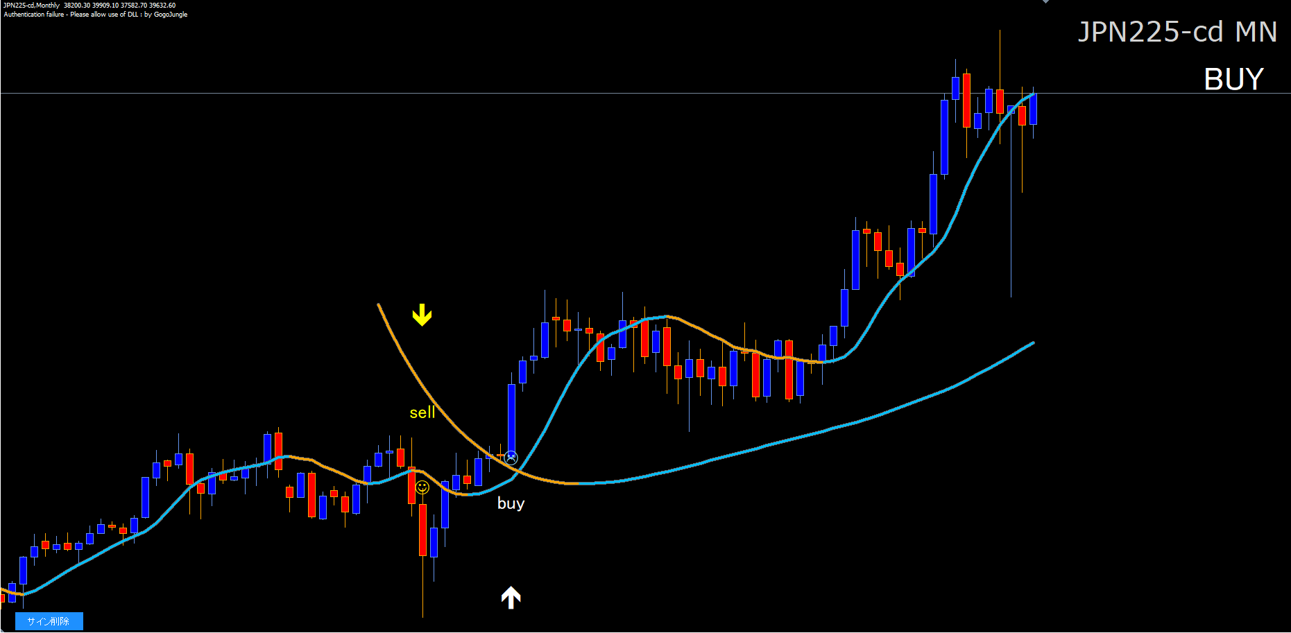 (MAラインのクロスと背景色の切り替わりが一致していて、どちらも精度が良いのが分かります)