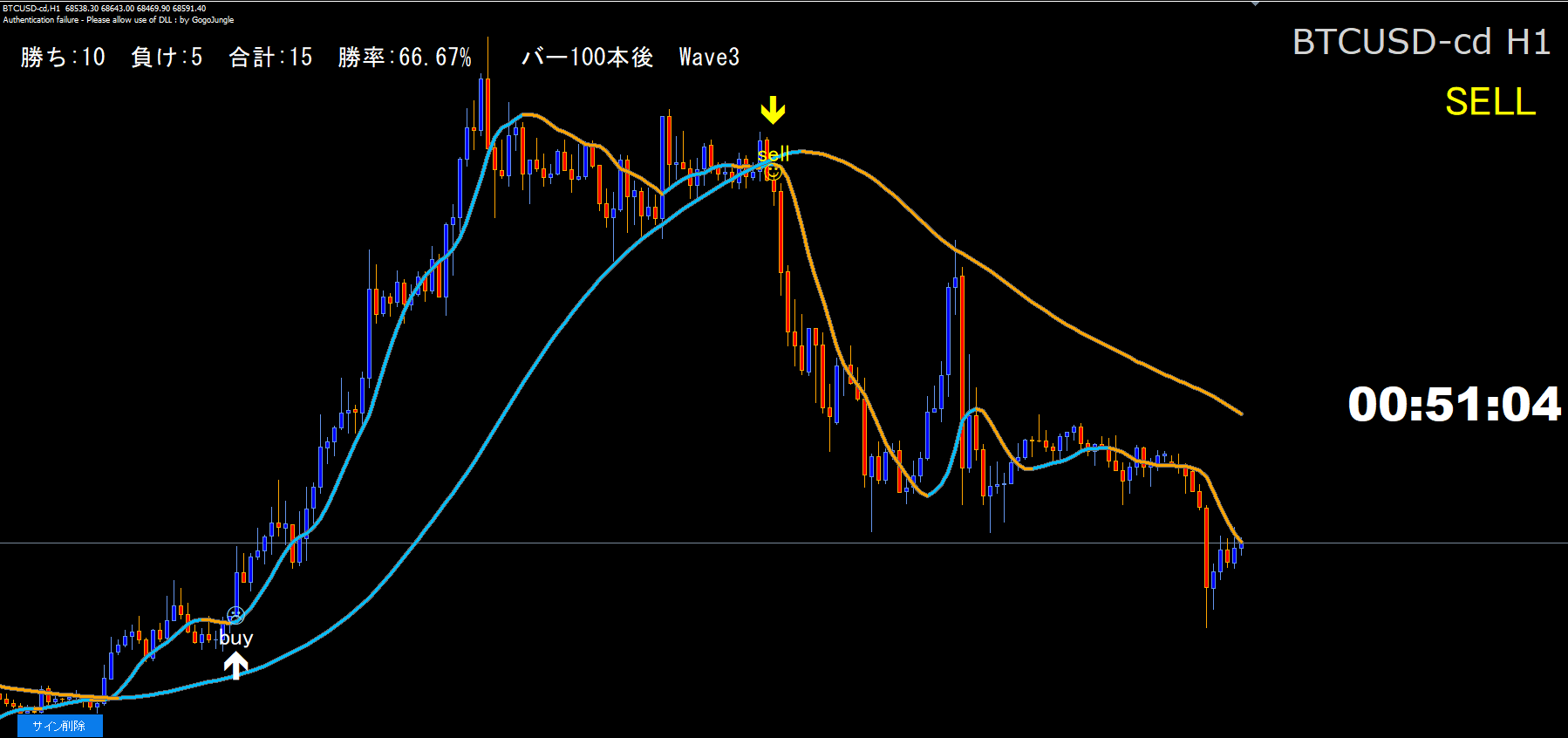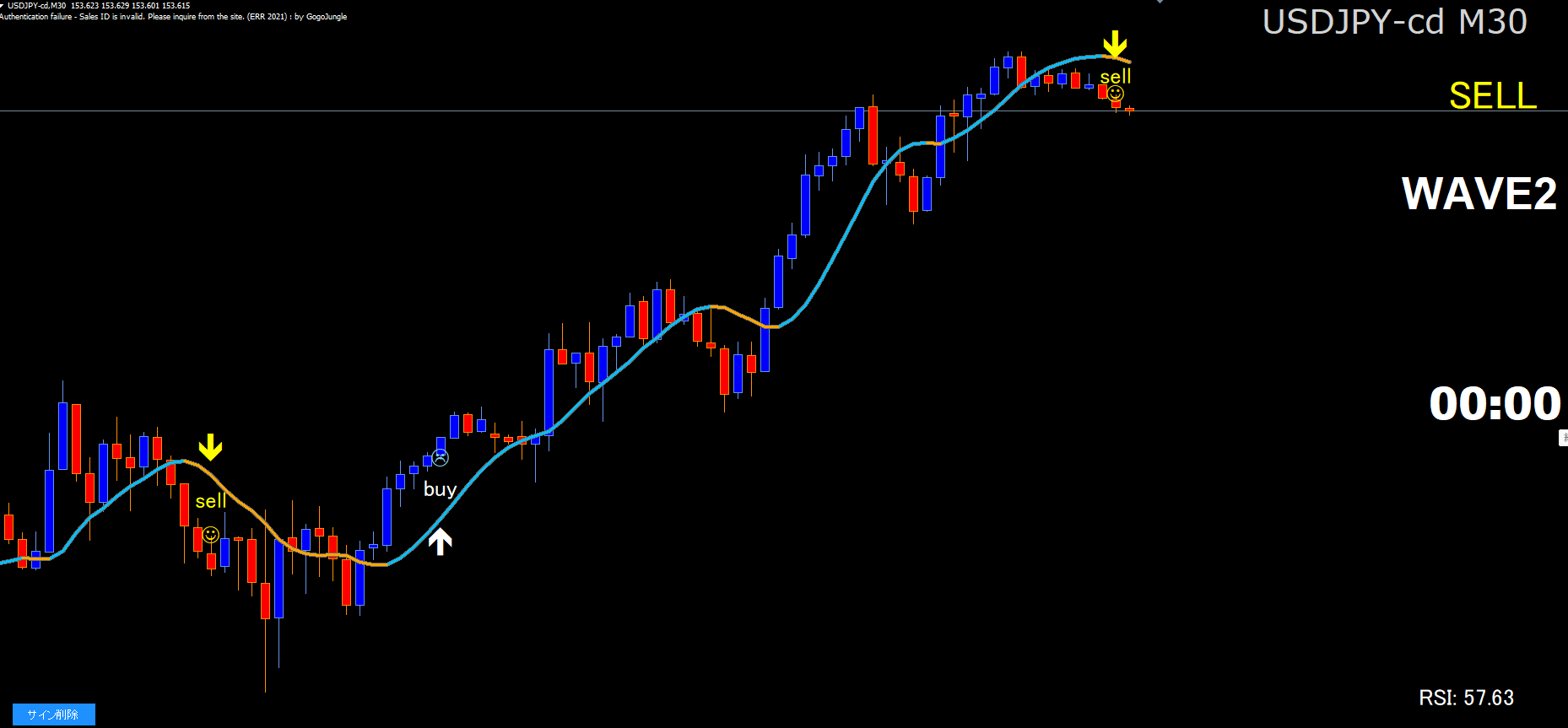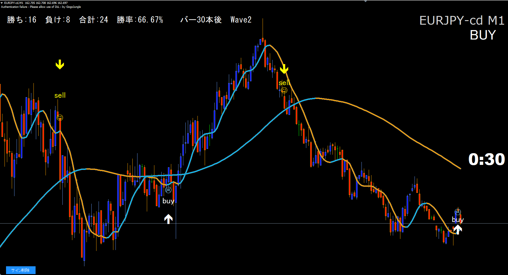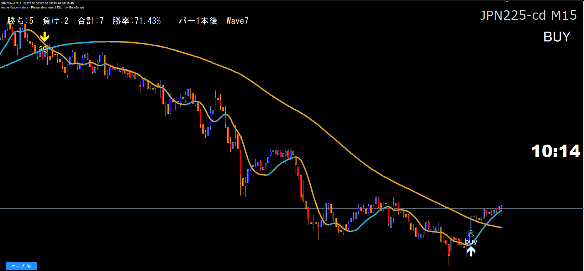 ◎画面に表示されてませんが、Wave設定値3です(スキャルピングには3がお勧め)↓