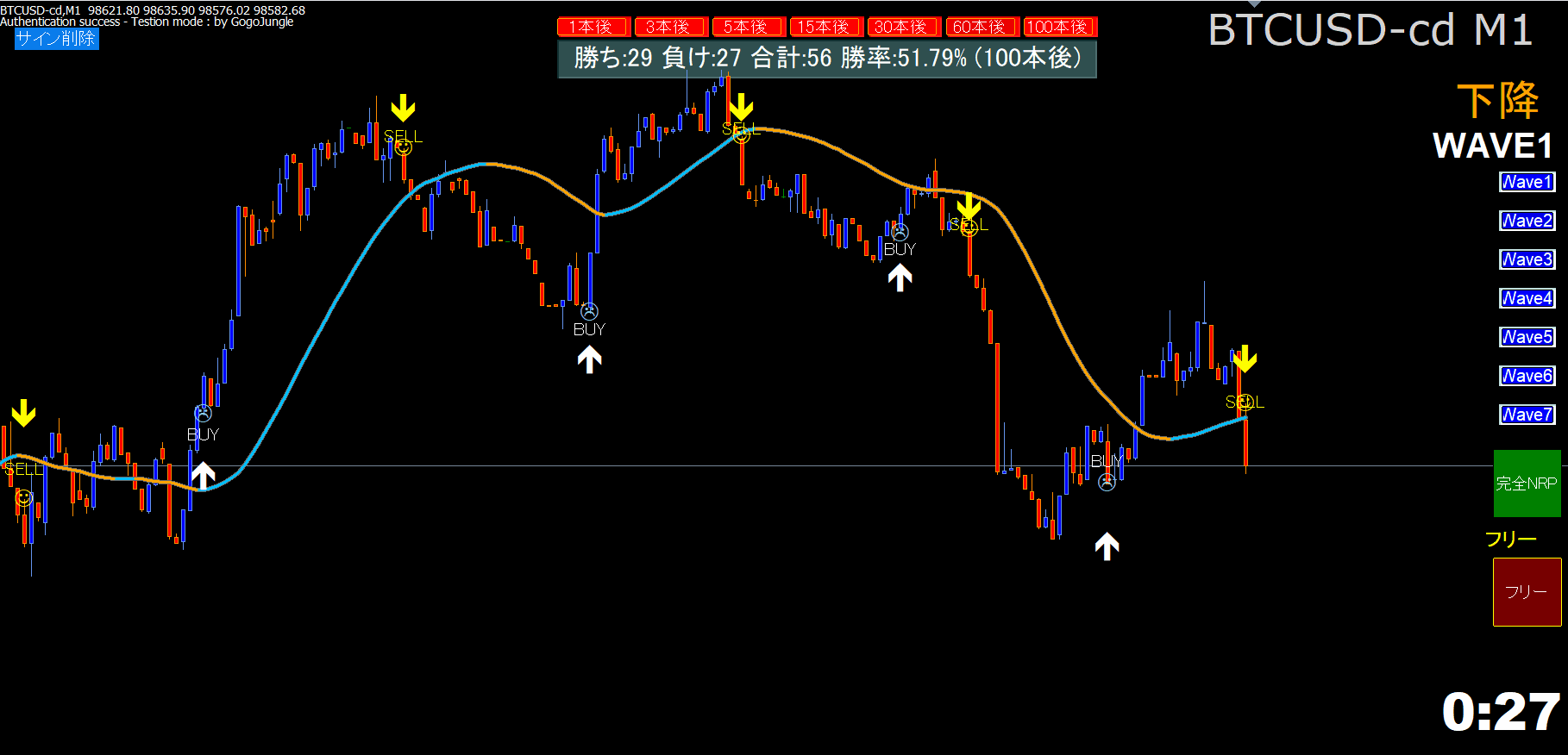 ★ WAVE設定値切替ボタン・WAVE設定値表示・トレンド方向表示・勝率表示等付属!