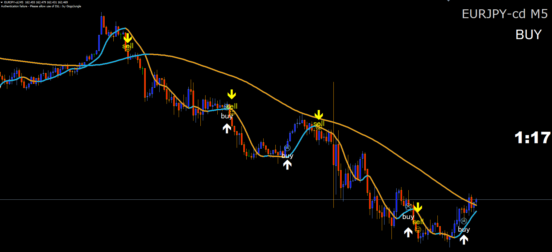 💛一度出たらローソク足形成中も、再起動でも消えない完全ノーリペイント矢印とMA