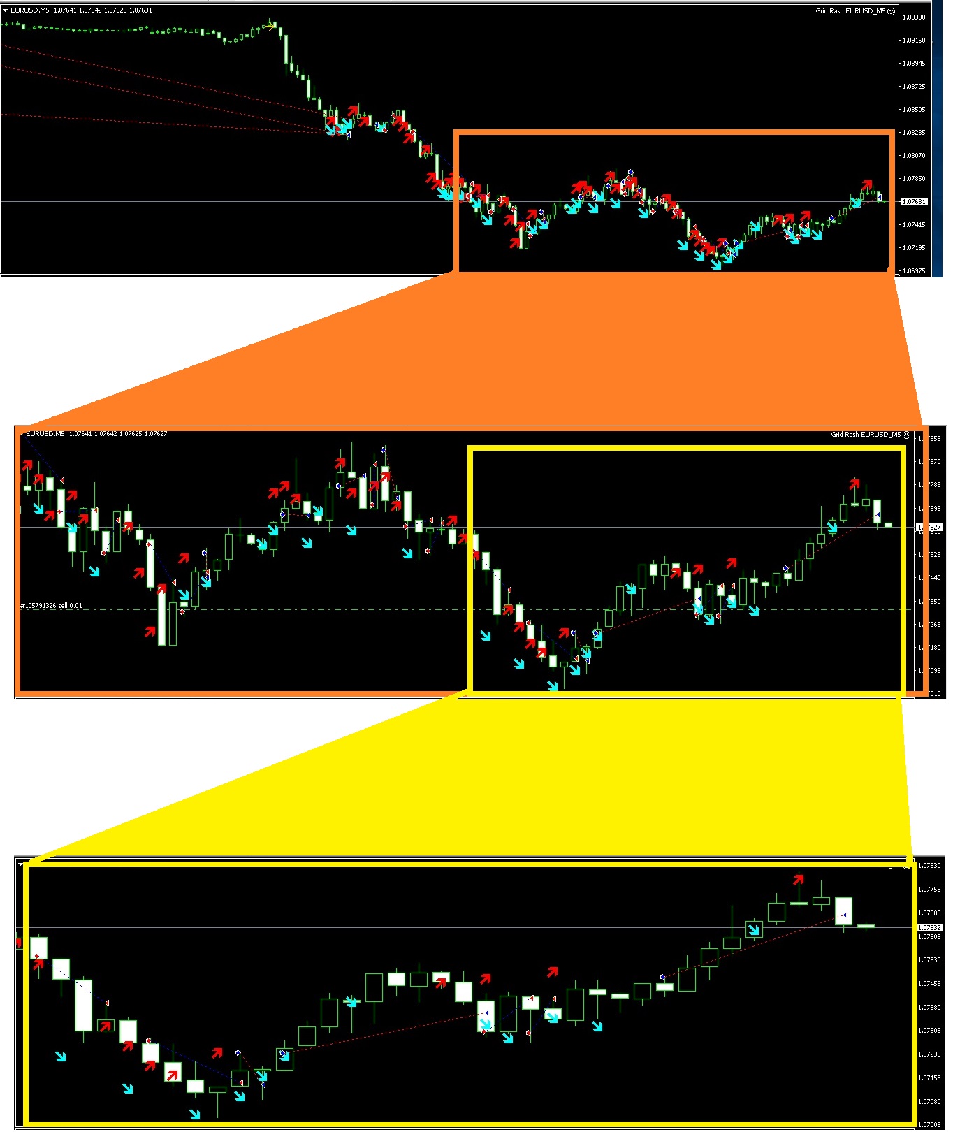 本インジケーターはユーロドルの1分足と5分足チャートに対応したスキャルピング系のサインインジケーターです。 ユーロドルでスプレッド0.5pipsを想定して開発しましたので、スプレッドが狭いFX会社推奨となります。