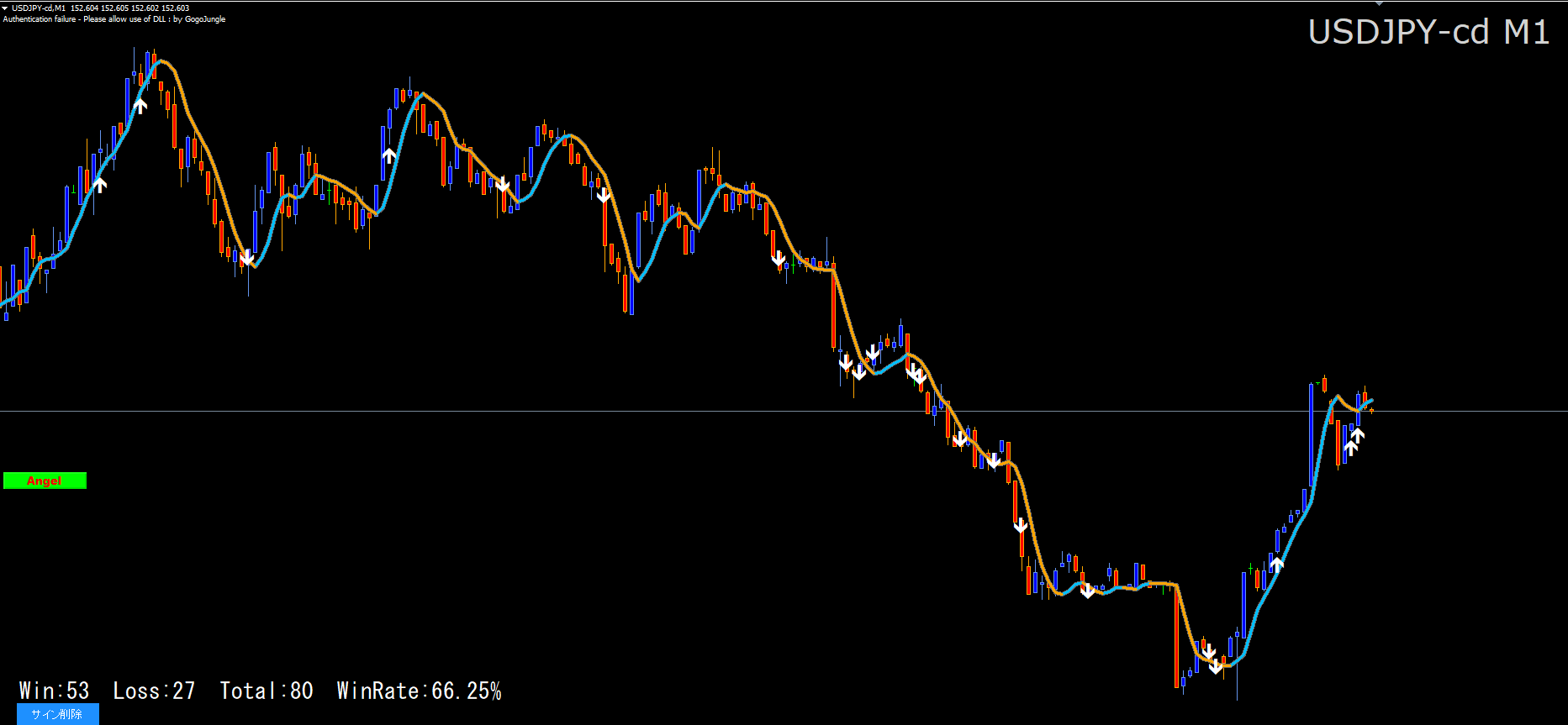 ジの表示されますが、完全に上書きされるので、勝ち負け数も勝率も変わりません。ただし、ローソク足千本