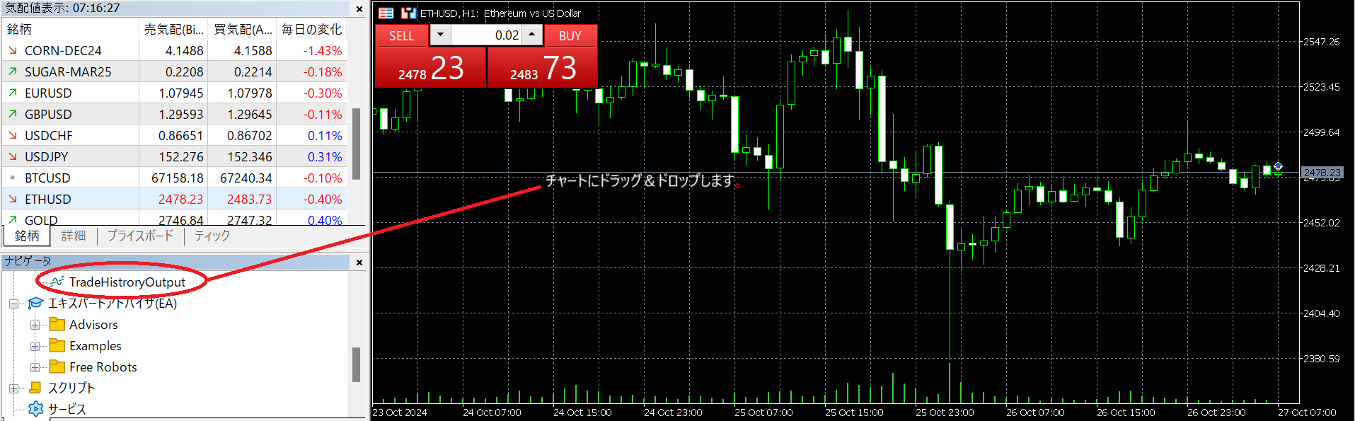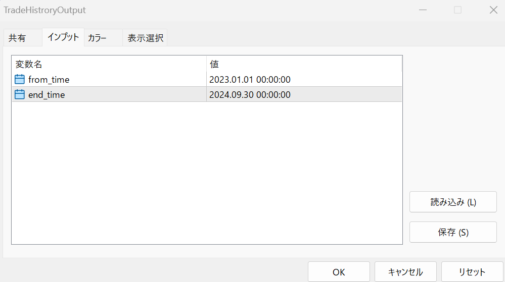 ※出力先はMT5の仕様上固定されてしまうことをご了承ください。
